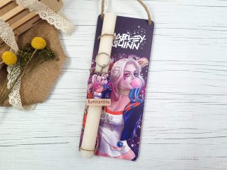 Πασχαλινή λαμπάδα με διακοσμητική πλάτη “Harley Quinn”