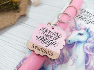 Πασχαλινή λαμπάδα με διακοσμητική πλάτη “Μονόκερος”