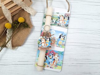 Πασχαλινή λαμπάδα με διακοσμητική πλάτη “Bluey”