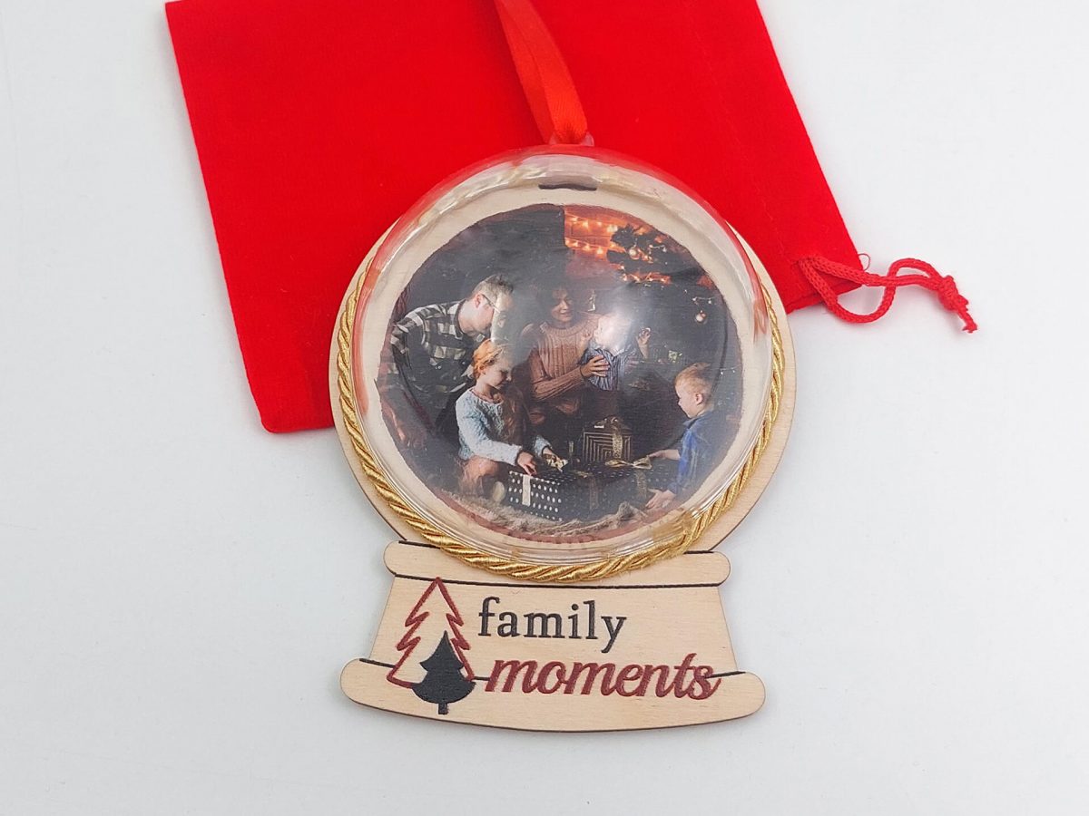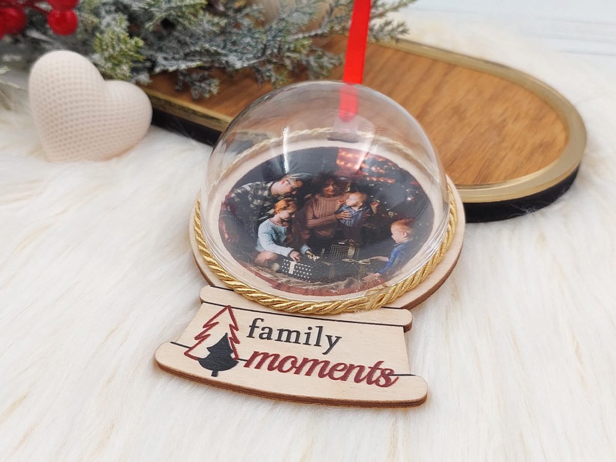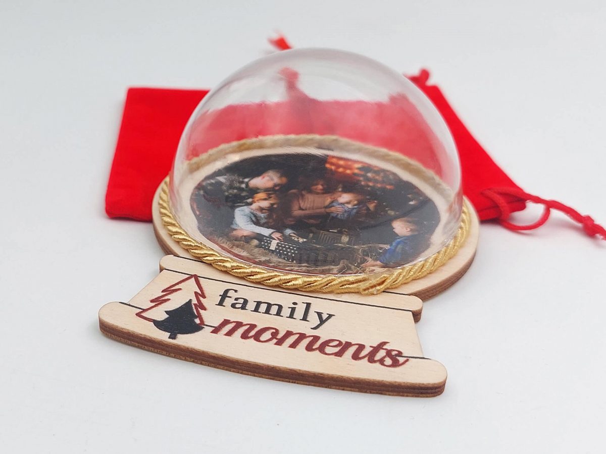 • Υλικά: Ξύλο κόντρα πλακέ πάχους 4mm, διάφανη πλαστική μπάλα, δεμένο με κόκκινη κορδέλα