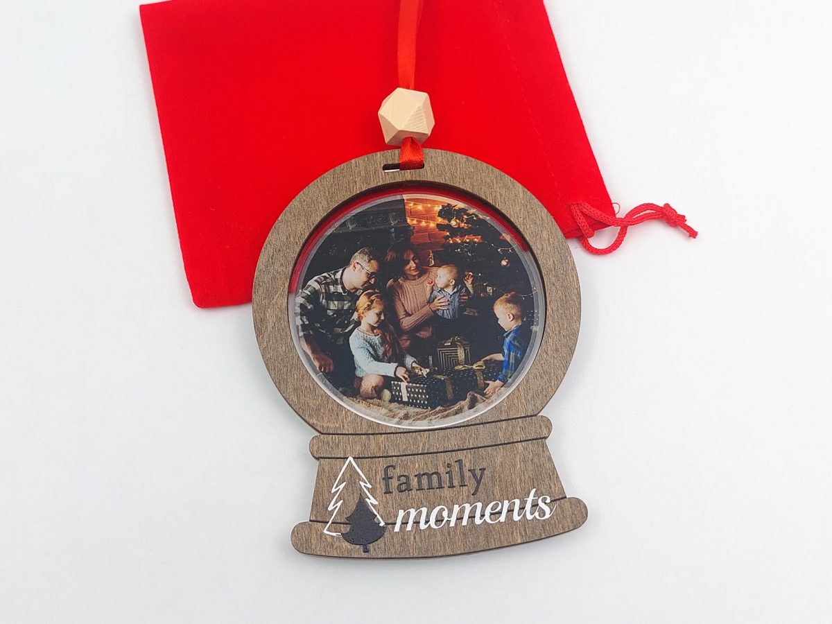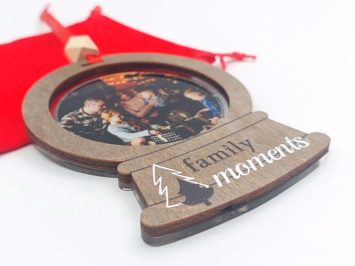 • Υλικά: Χρωματισμένο ξύλο πάχους 4mm, διάφανο ακρυλικό πάχους 3mm, δεμένο με κόκκινη κορδέλα και ξύλινη χάντρα
