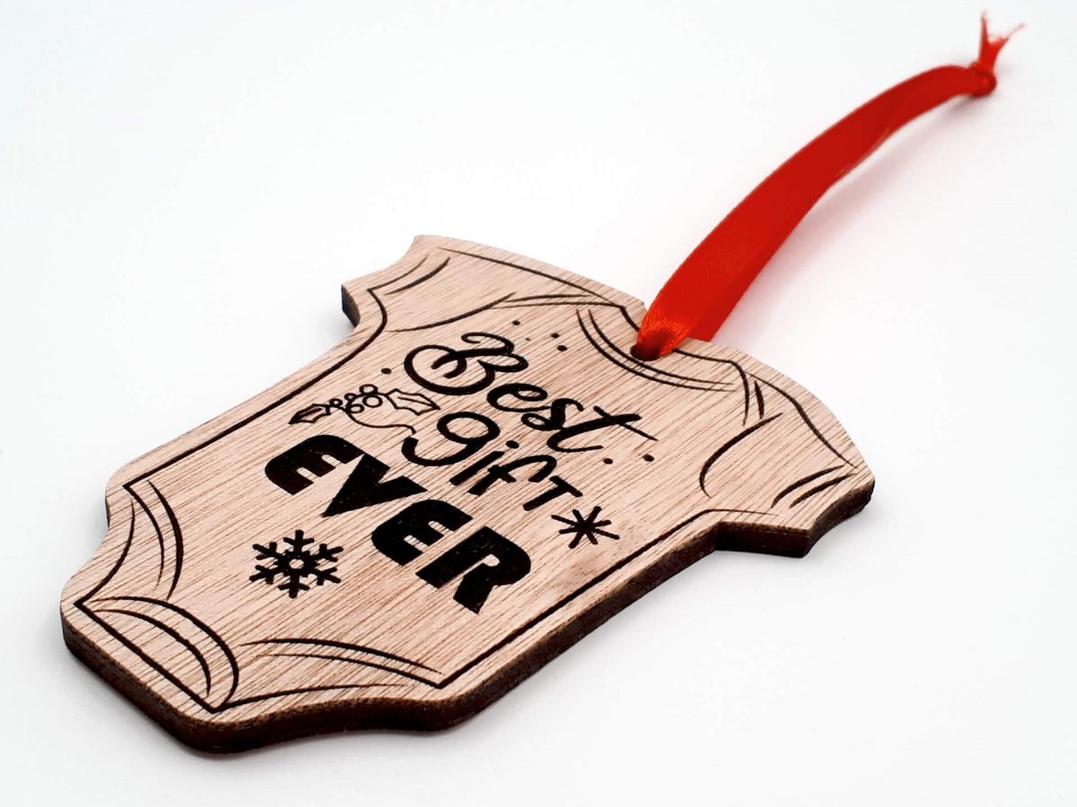 • Υλικά: Ξύλο κόντρα πλακέ οκουμέ πάχους 4mm, δεμένο με κόκκινη κορδέλα 7mm