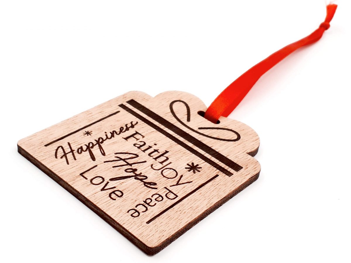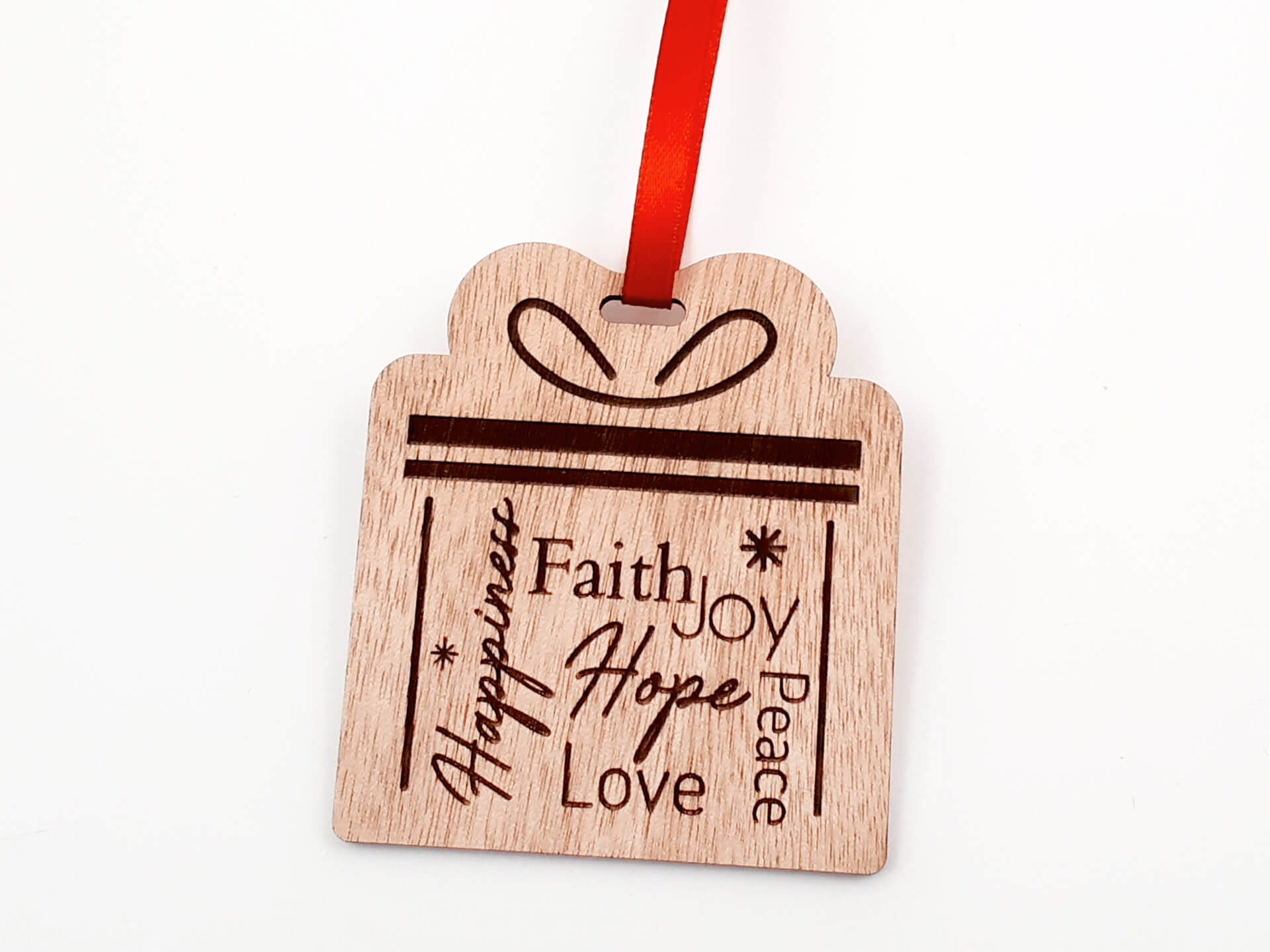 • Υλικά: Ξύλο κόντρα πλακέ οκουμέ πάχους 4mm, δεμένο με κόκκινη κορδέλα 7mm
