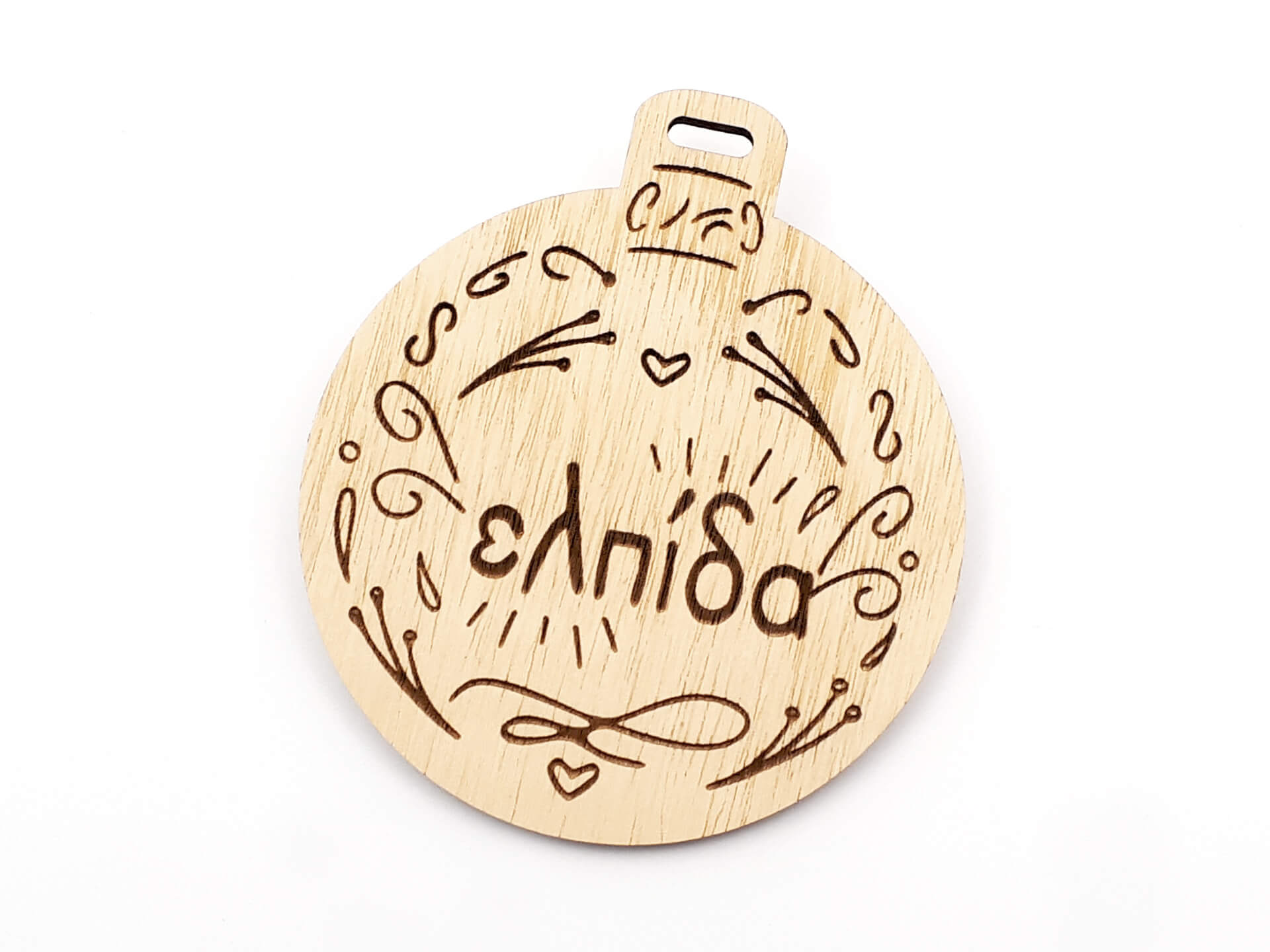 Χριστουγεννιάτικο ξύλινο στολίδι “Μπάλα με ευχή ελπίδα”