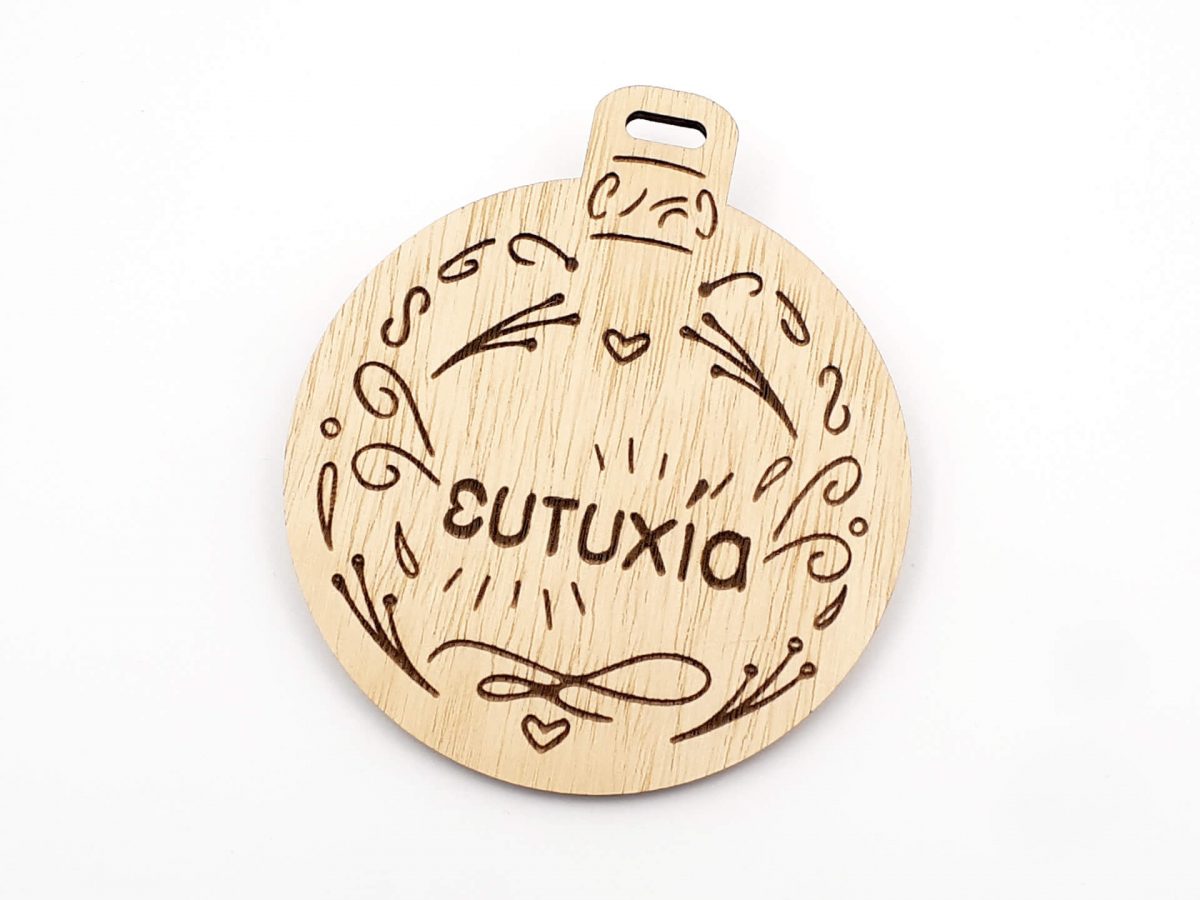 Χριστουγεννιάτικο ξύλινο στολίδι “Μπάλα με ευχή ευτυχία”