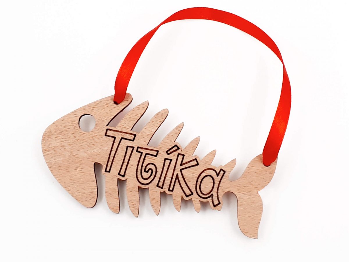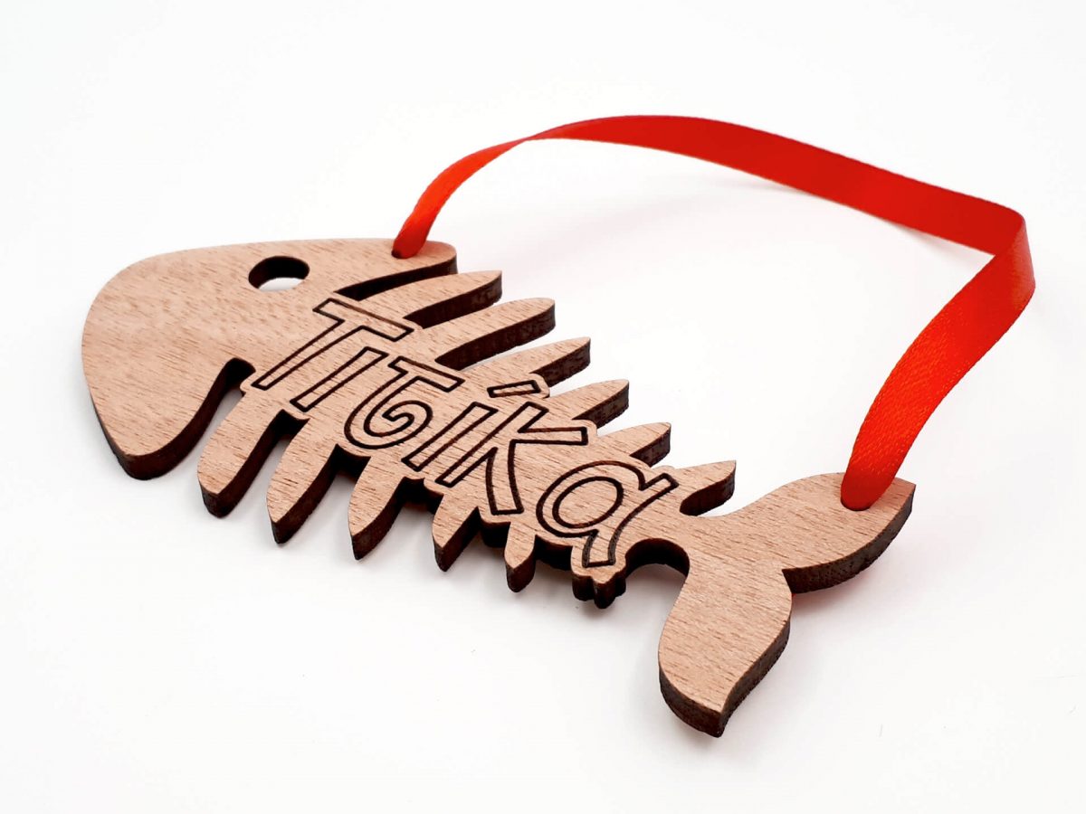 • Υλικά: Ξύλο κόντρα πλακέ οκουμέ πάχους 4mm, δεμένο με κόκκινη κορδέλα 7mm