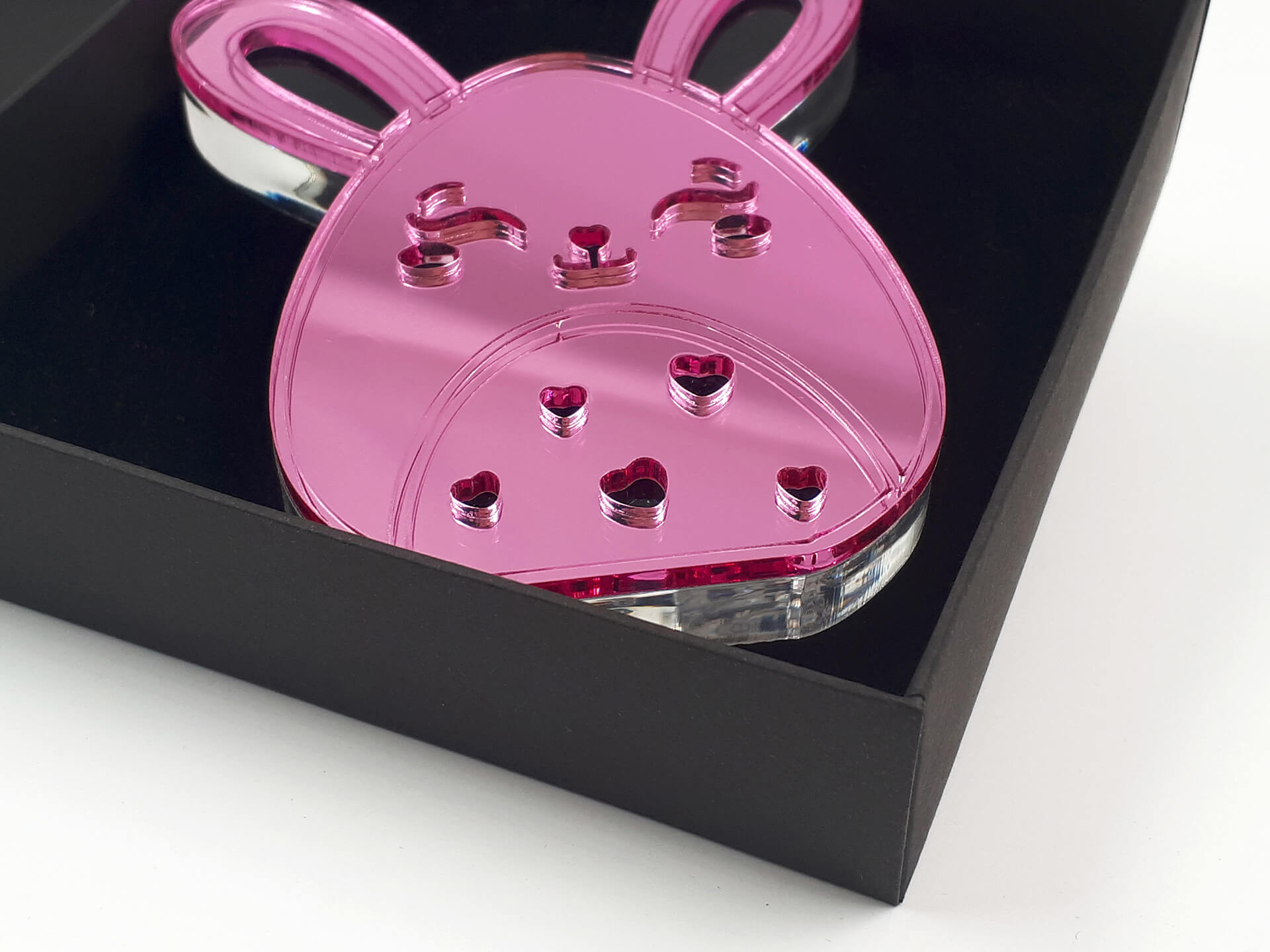 • Υλικά: Διάφανο ακρυλικό πάχους 10mm, Καθρέπτης ροζ και μπλε πάχους 3mm