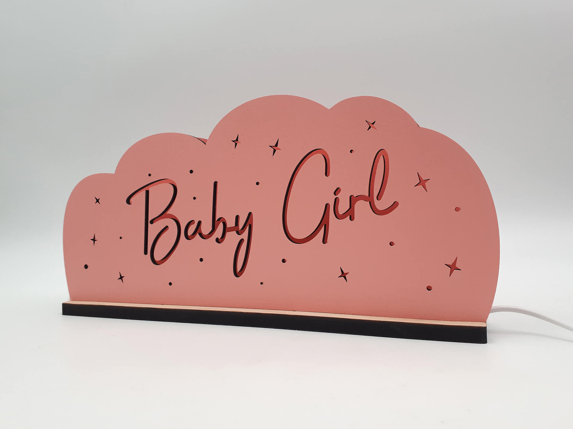 Πρωτότυπο φωτιστικό σύννεφο με κείμενο ''Baby Girl'' για τη διακόσμηση του παιδικού δωματίου. Η καλύτερη επιλογή για να φωτίζει τις νύχτες του μωρού σας!