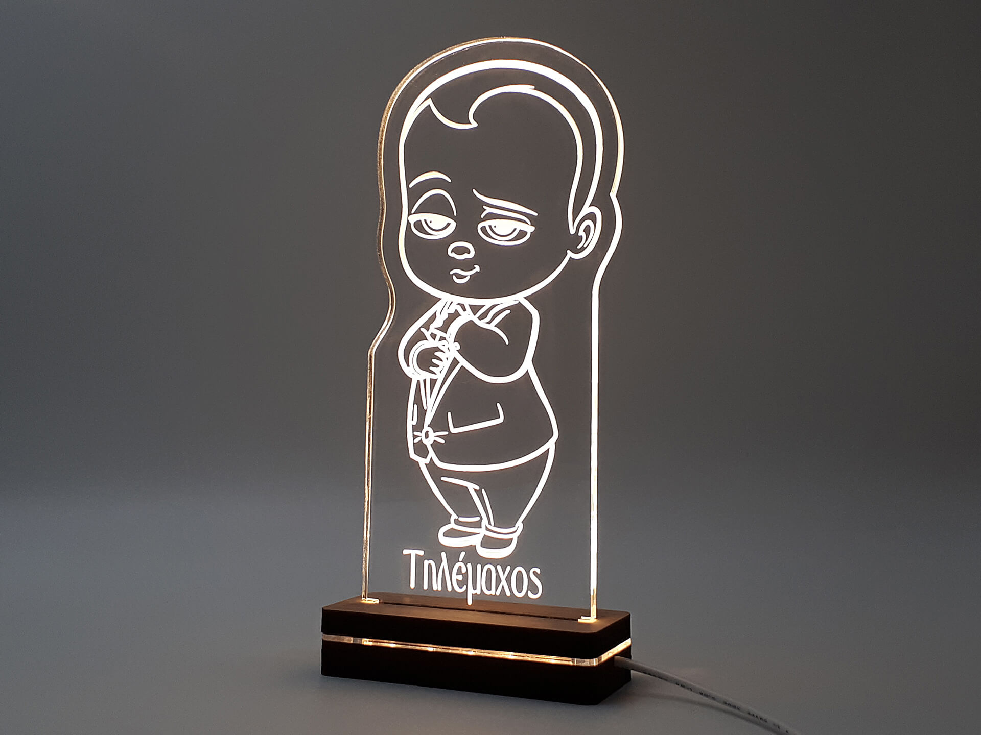 • Υλικά: Led λευκού χρώματος, Ακρυλικό διάφανο πάχους 6mm, Χειροποίητη βάση από ξύλο και ακρυλικό