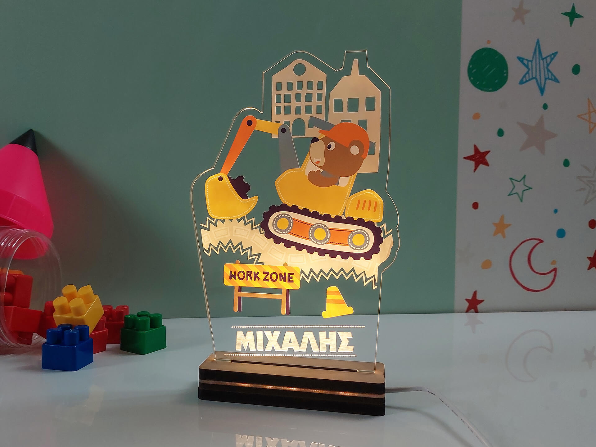 Διακοσμήστε το παιδικό δωμάτιο με ένα πρωτότυπο φωτιστικό με θέμα εκσκαφέα.