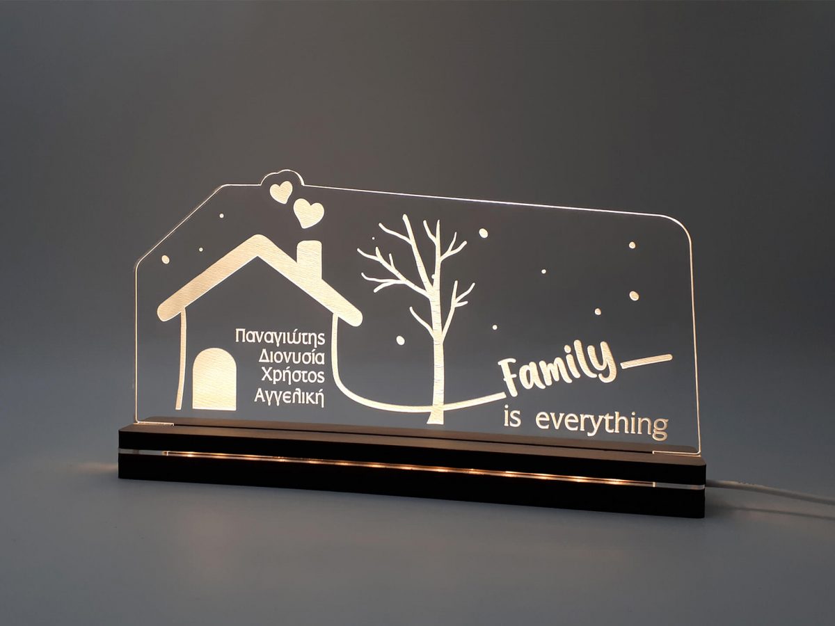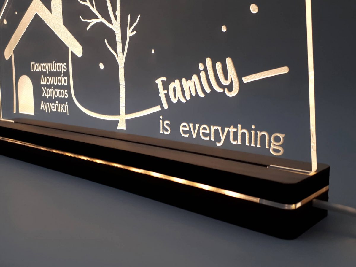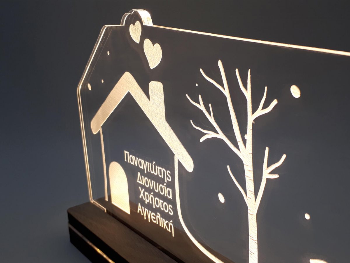 • Υλικά: Led λευκού χρώματος, Ακρυλικό διάφανο πάχους 6mm, Χειροποίητη βάση από ξύλο και ακρυλικό