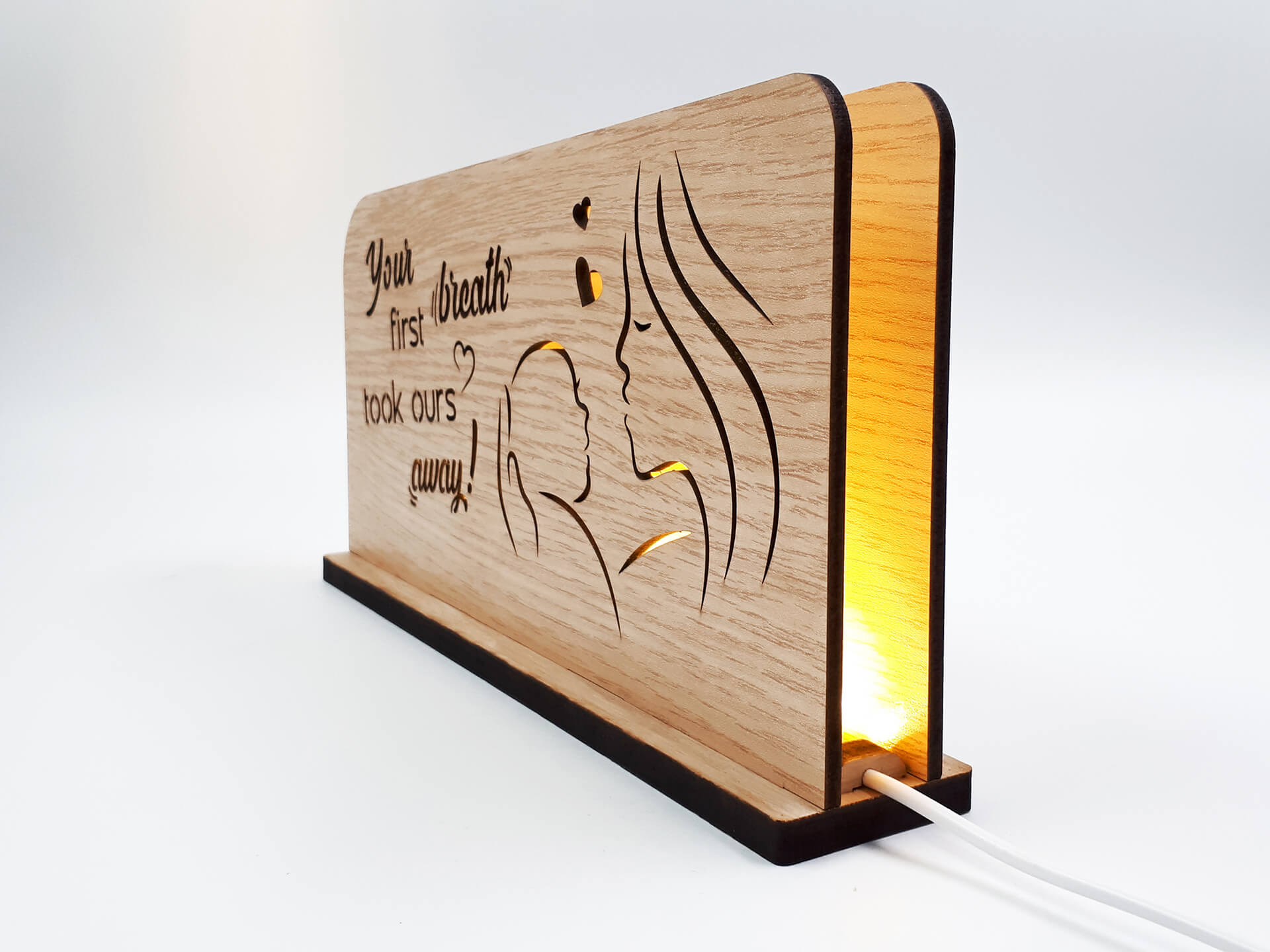 Πρωτότυπo ξύλινο φωτιστικό με θέμα τον ερχομό του νέου μέλους της οικογενείας! Ένα ιδιαίτερο δώρο για τους νέους γονείς!