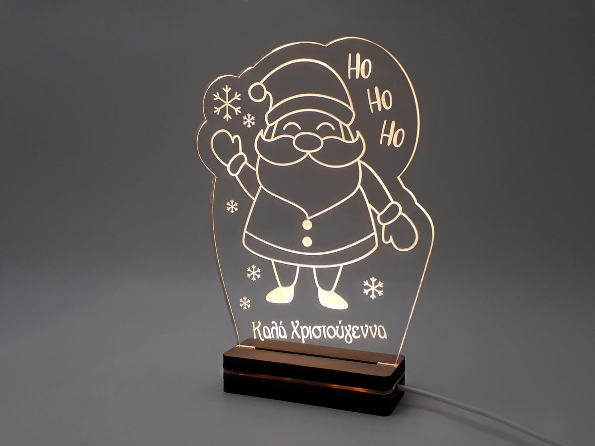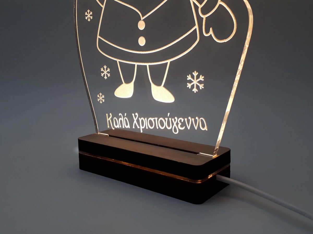 • Υλικά: Led λευκού χρώματος, Ακρυλικό διάφανο πάχους 6mm, Χειροποίητη βάση από ξύλο και ακρυλικό