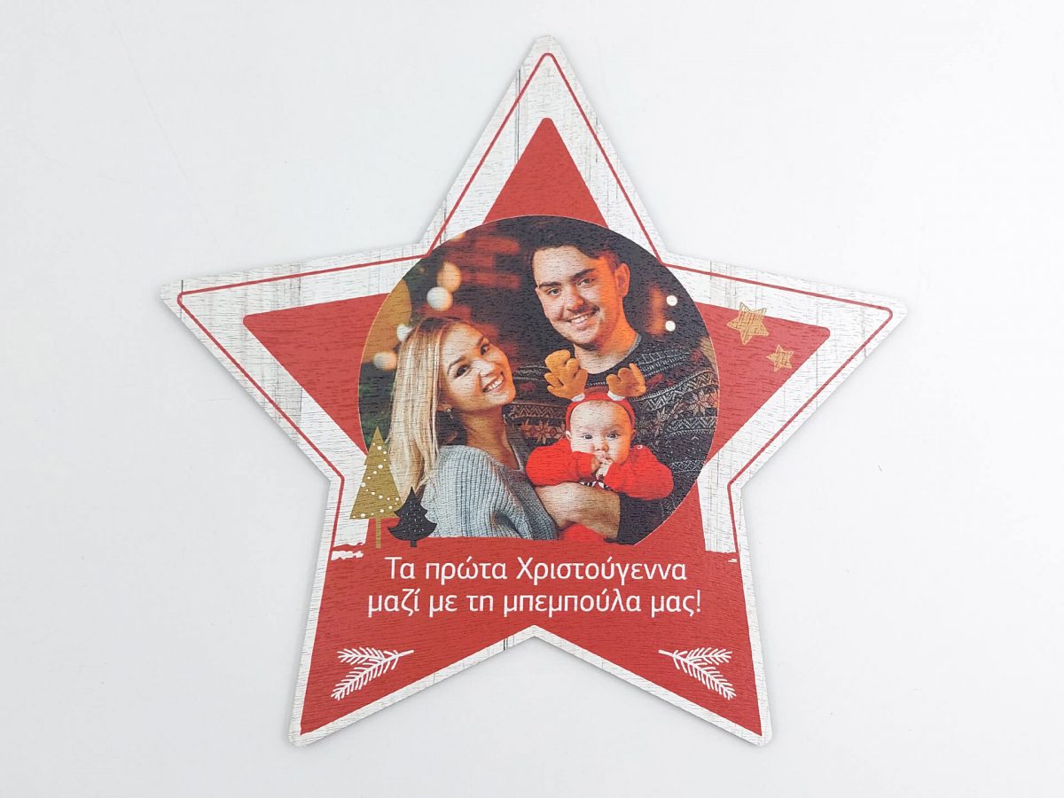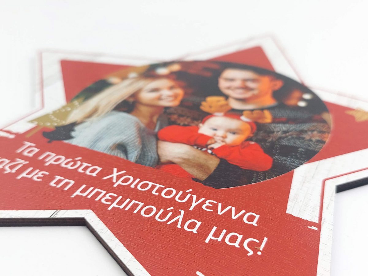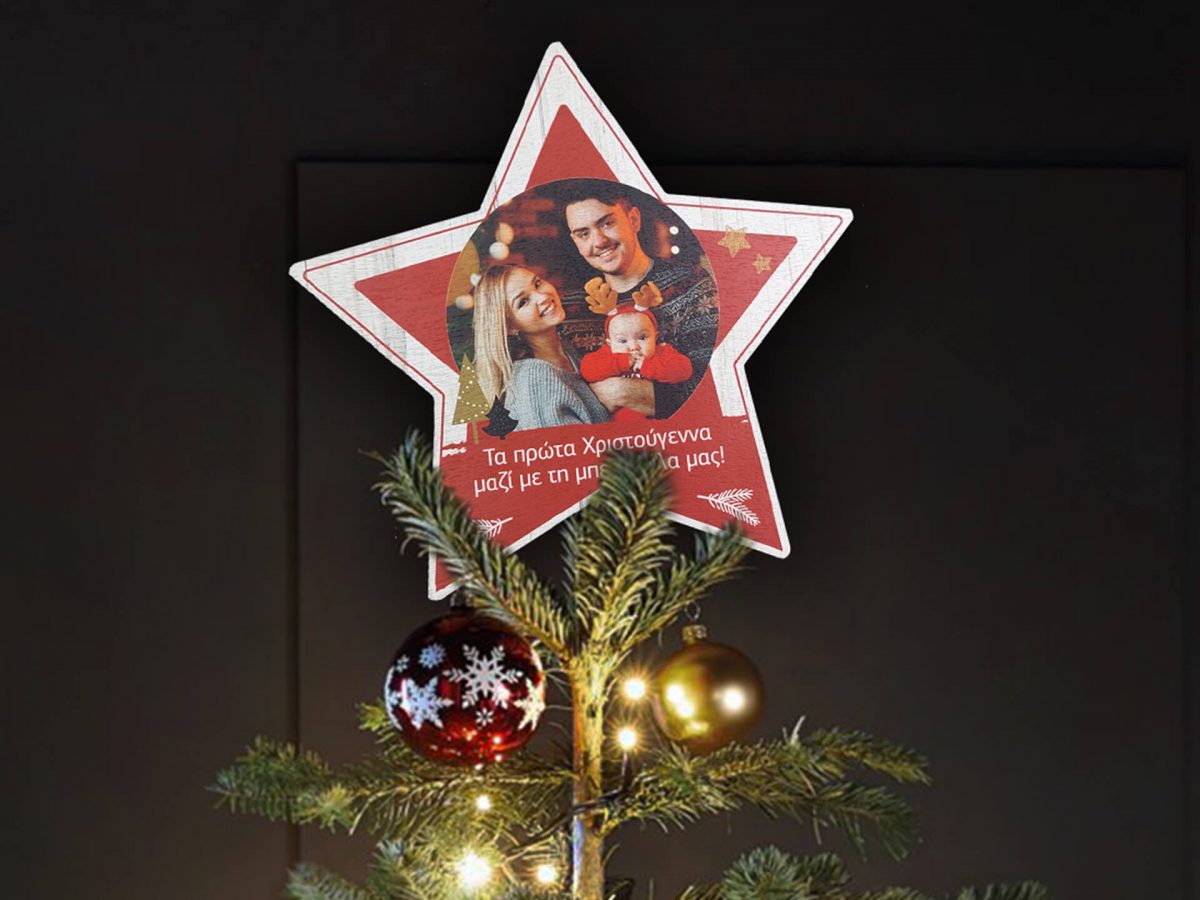 Ξύλινη κορυφή δέντρου αστέρι με εκτύπωση. Φέτος το χριστουγεννιάτικο δέντρο σας θα είναι ακόμη πιο ξεχωριστό!