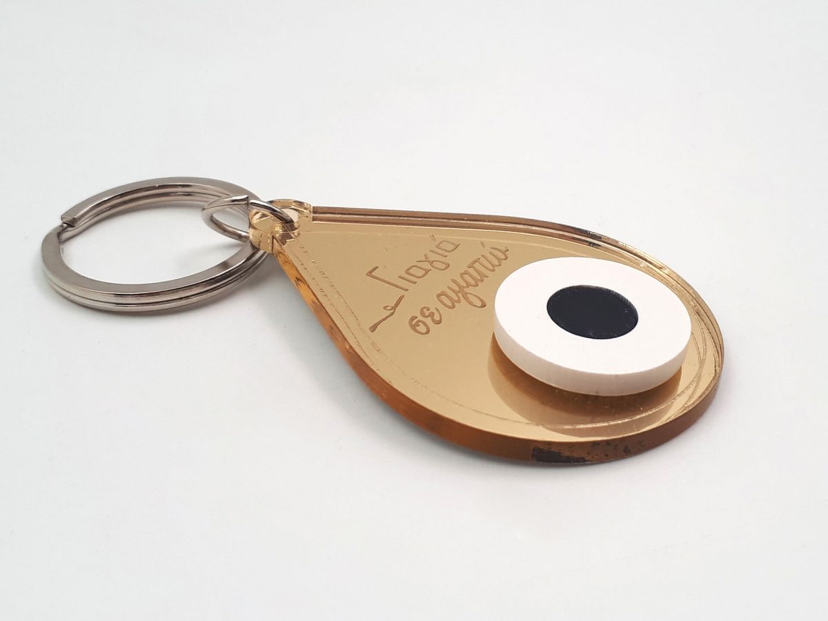 • Υλικά: Ακρυλικό(plexiglass) καθρέπτης χρυσό πάχους 3mm, Ακρυλικό μαύρο και λευκό 3mm, Mεταλλικοί κρίκοι