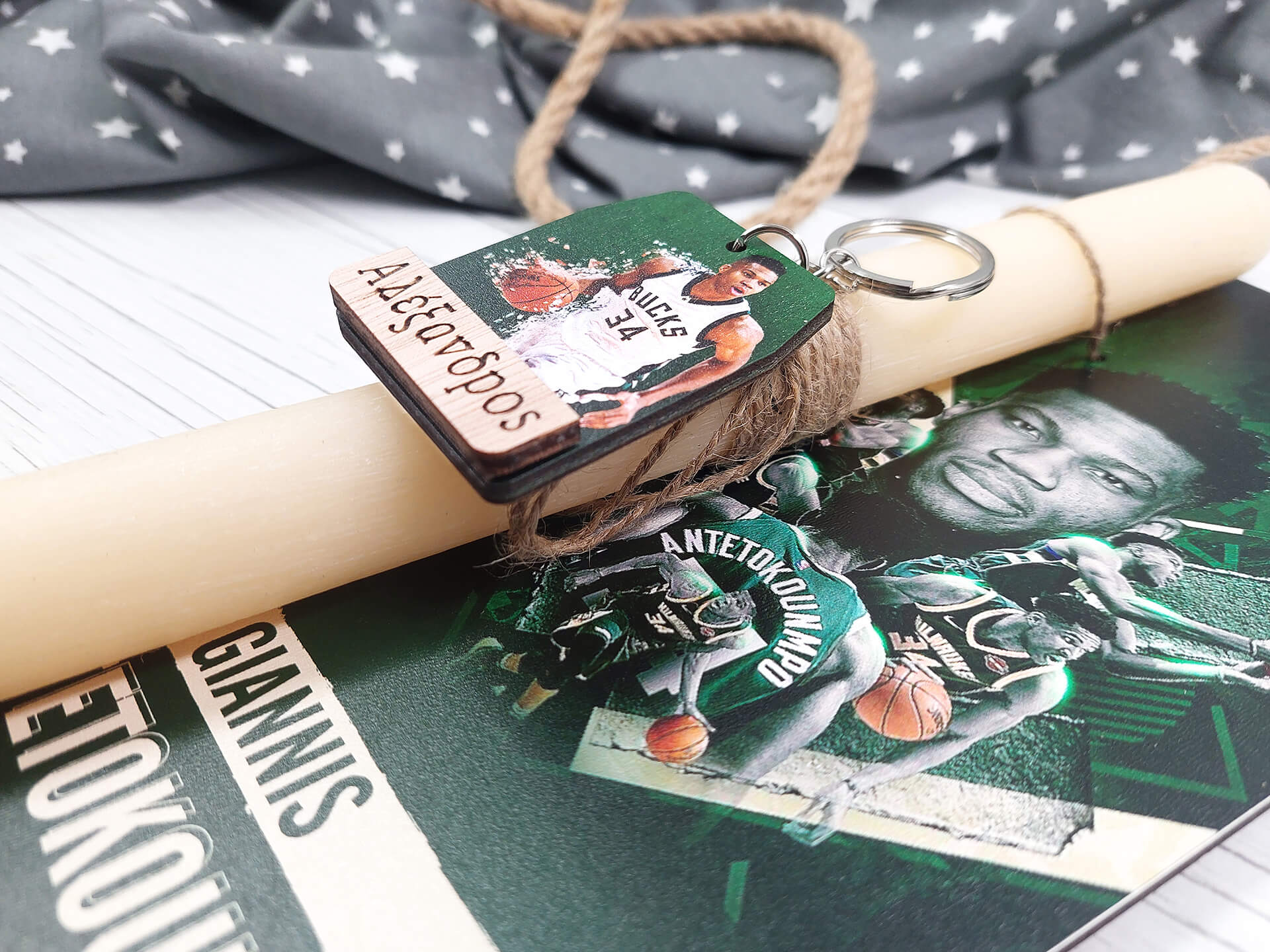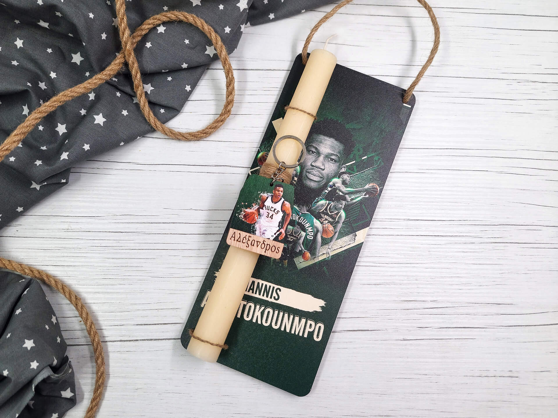 Πασχαλινή λαμπάδα με διακοσμητική πλάτη “Antetokounmpo”