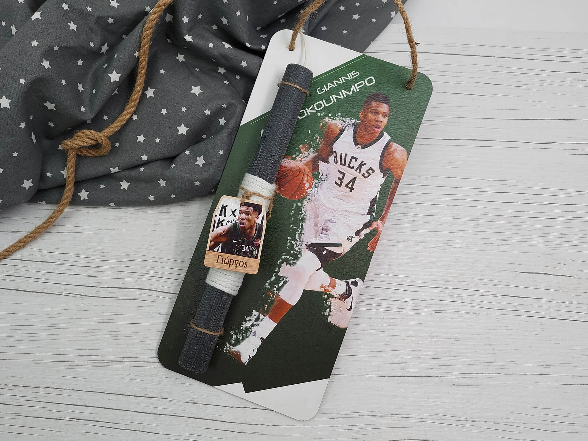 Πασχαλινή λαμπάδα με διακοσμητική πλάτη “Antetokounmpo”