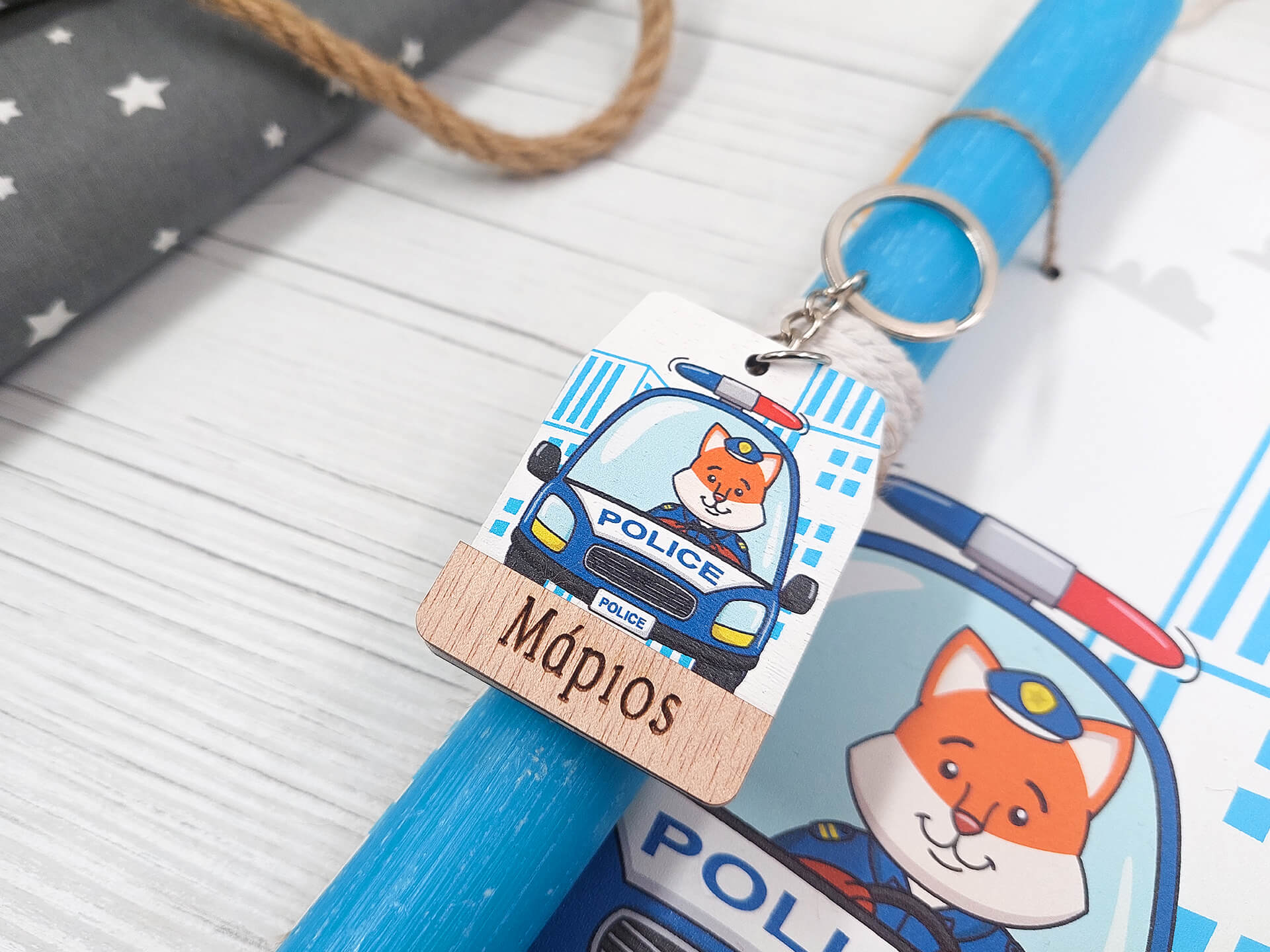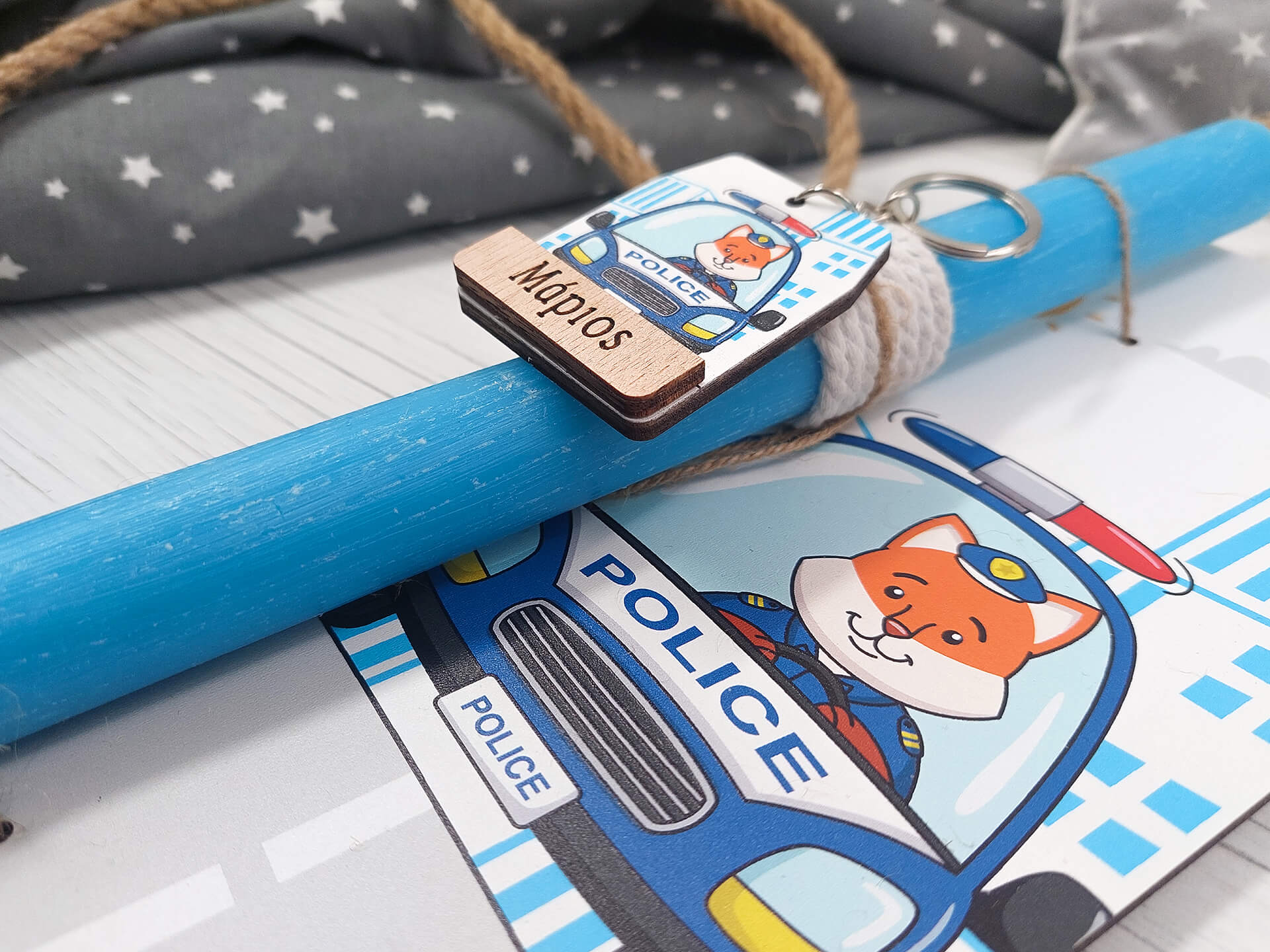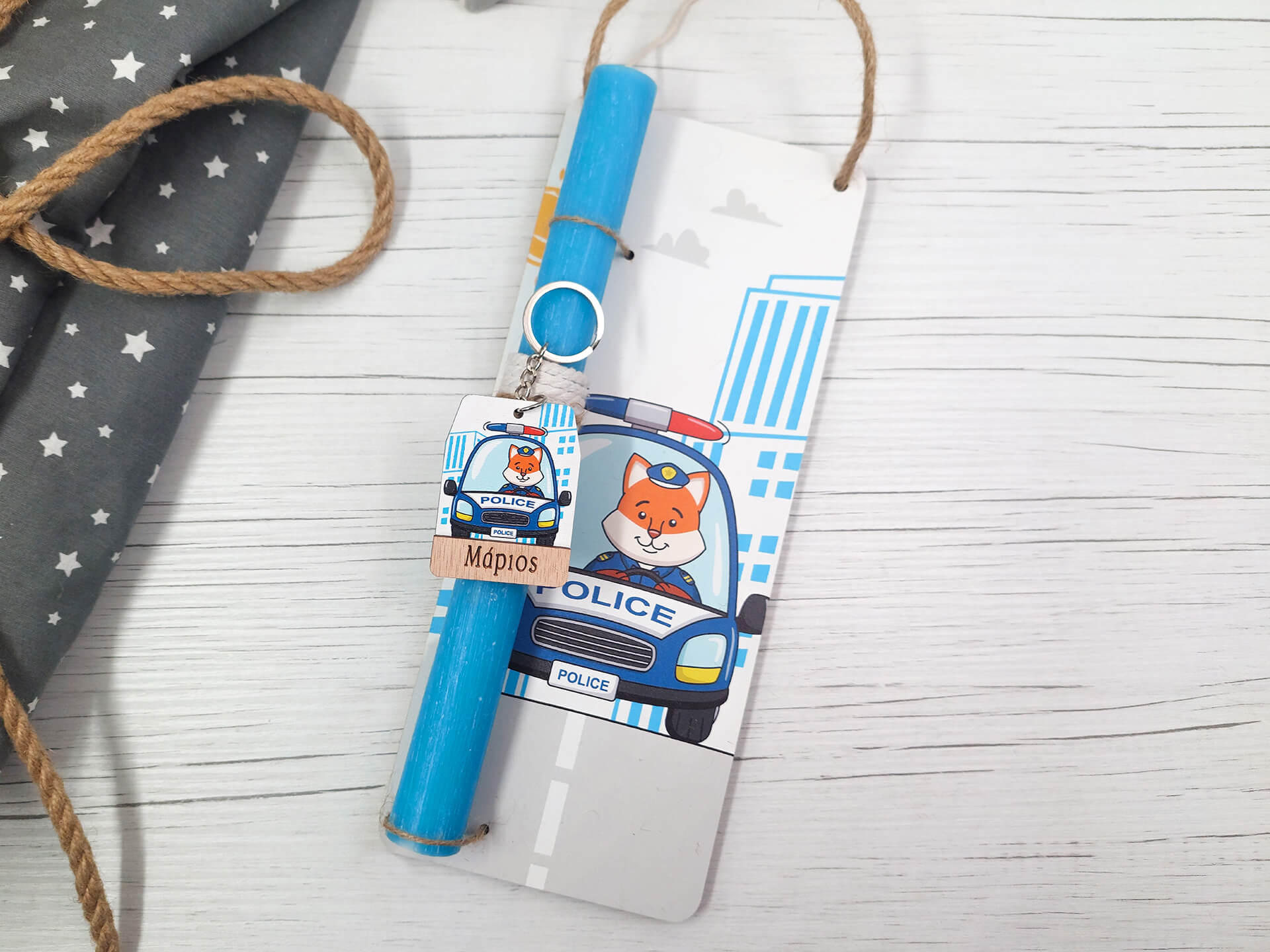 Πασχαλινή λαμπάδα με διακοσμητική πλάτη “Αστυνομικό”