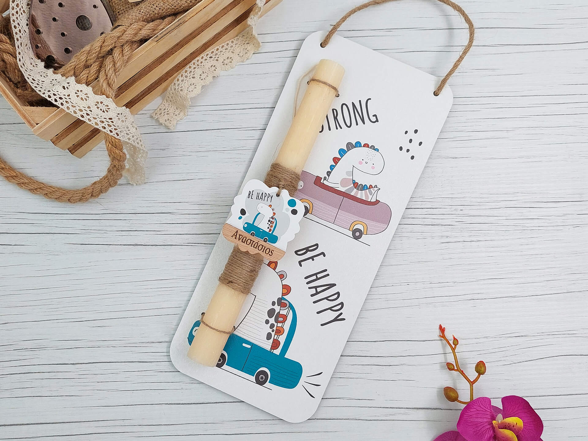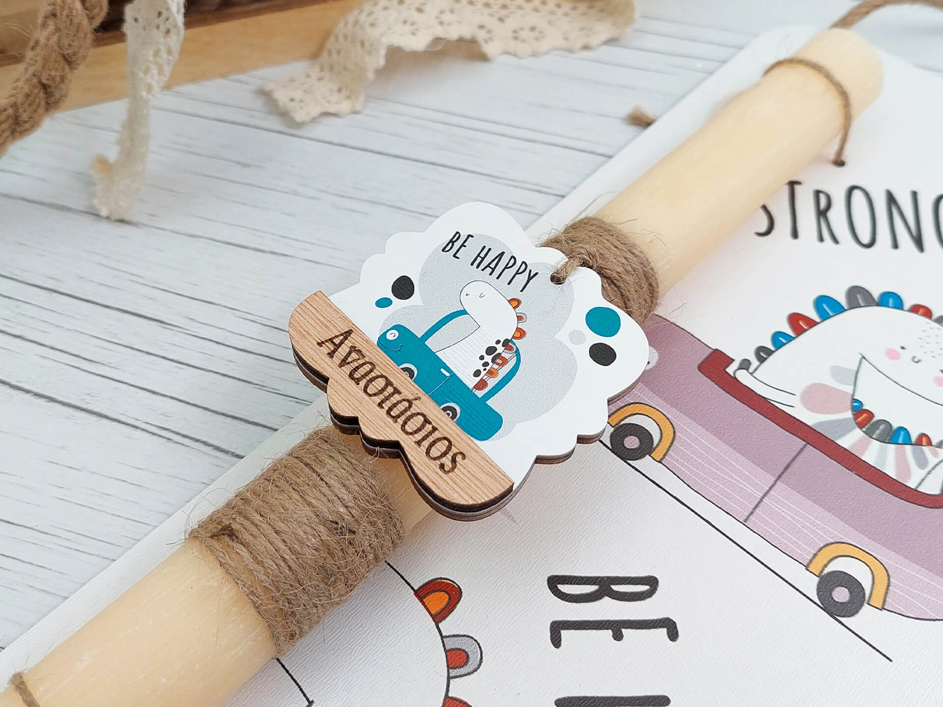 Πασχαλινή λαμπάδα με διακοσμητική πλάτη “Baby Dino”