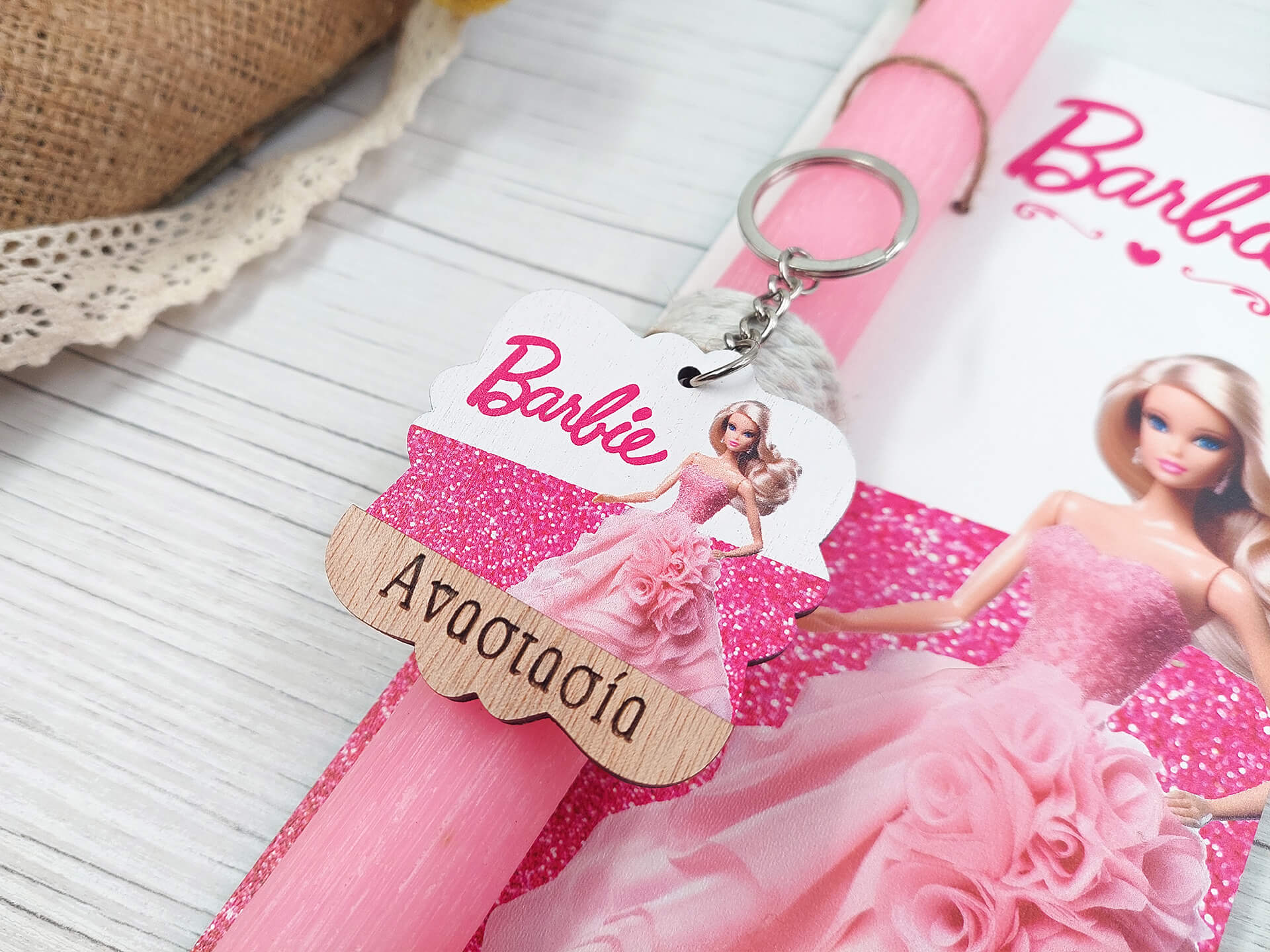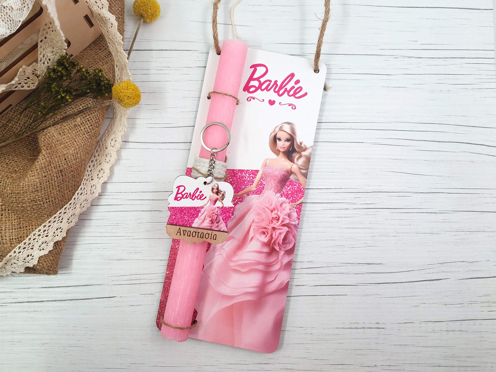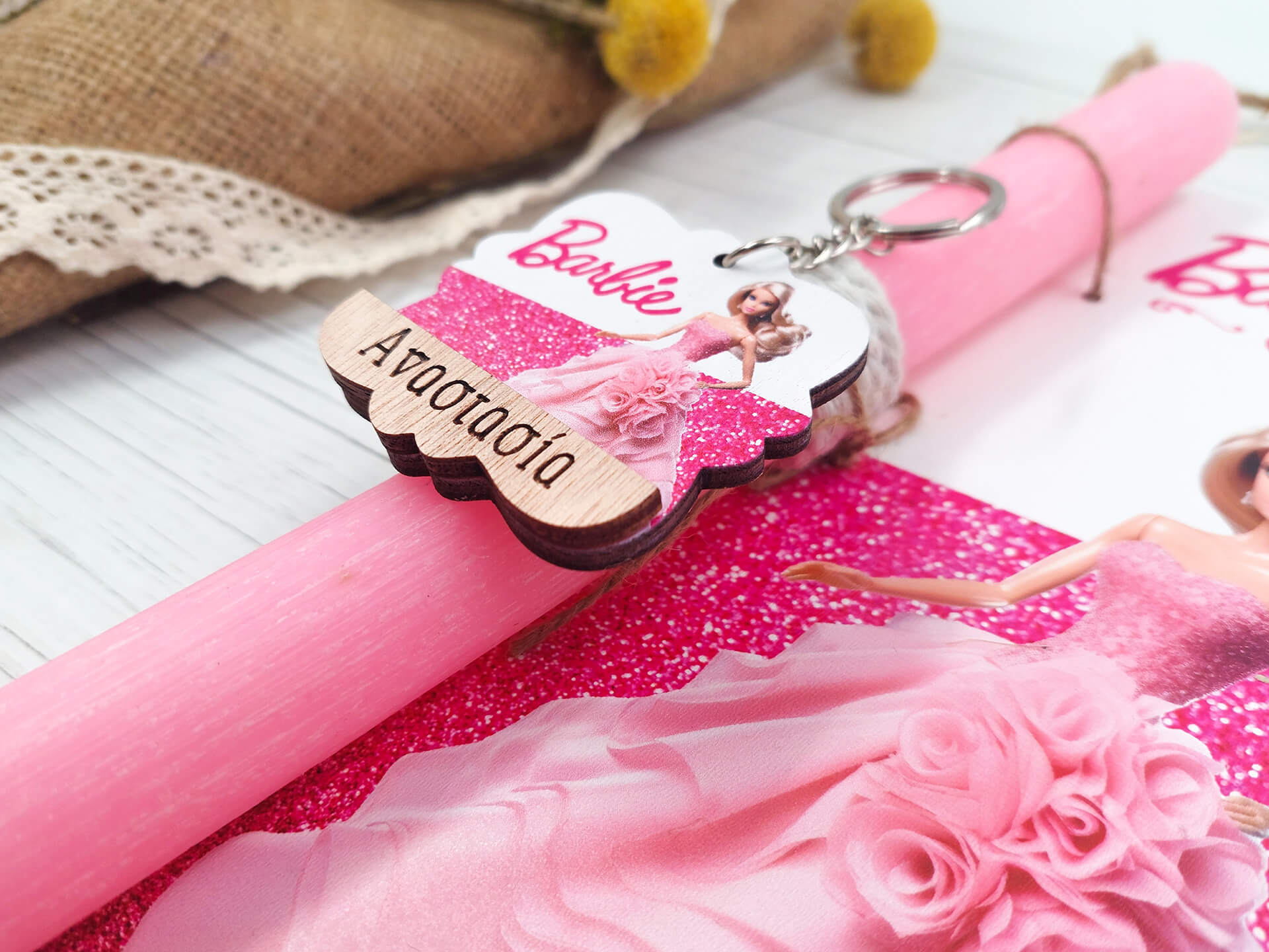 Πασχαλινή λαμπάδα με διακοσμητική πλάτη “Barbie”