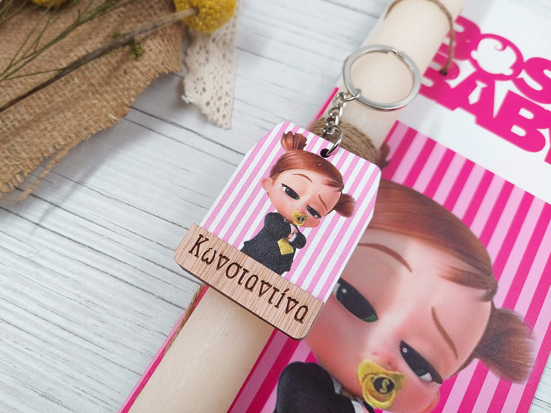 Πασχαλινή λαμπάδα με διακοσμητική πλάτη “Boss Baby Girl Edition”