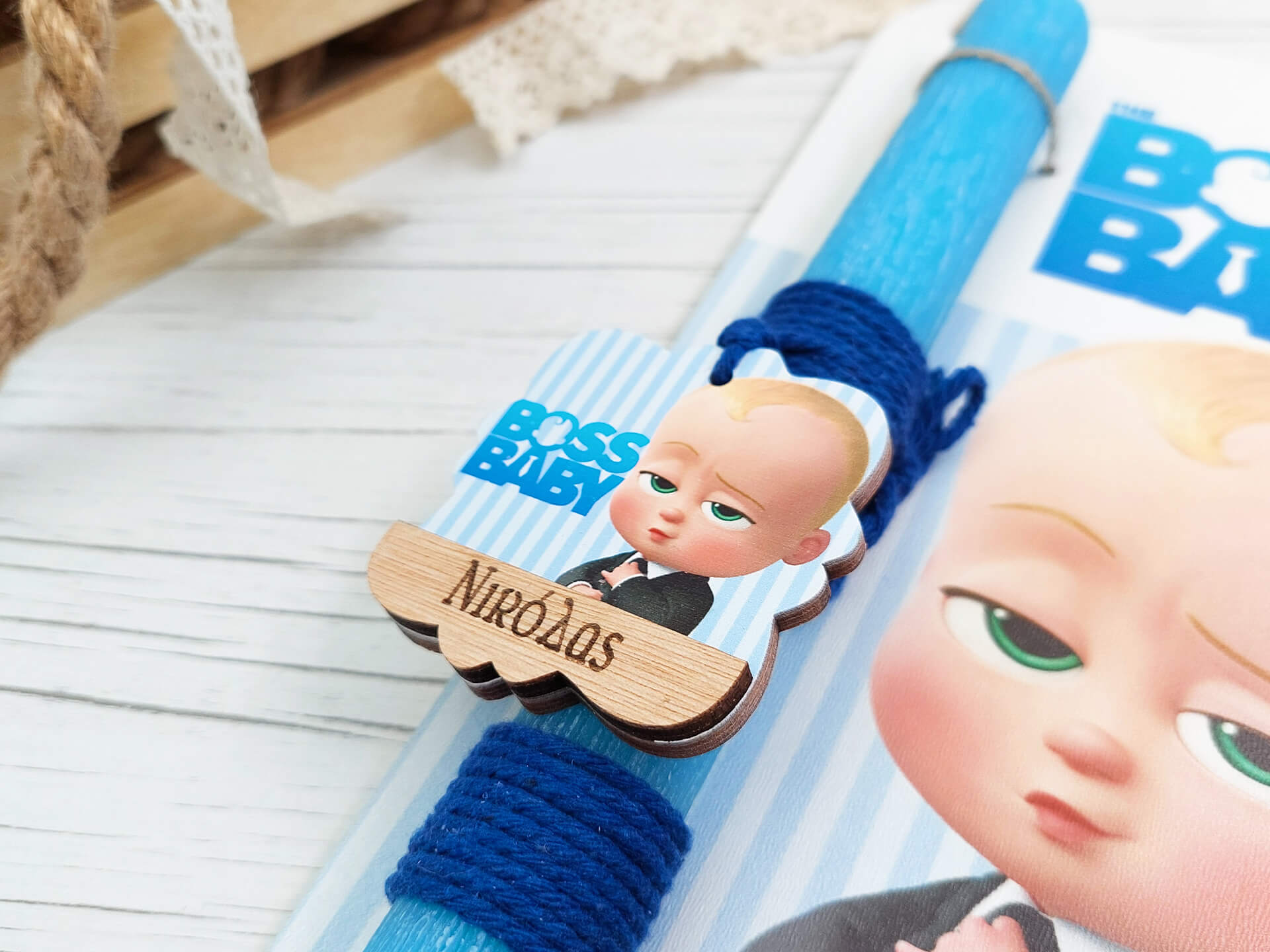 Πασχαλινή λαμπάδα με διακοσμητική πλάτη “Boss Baby”