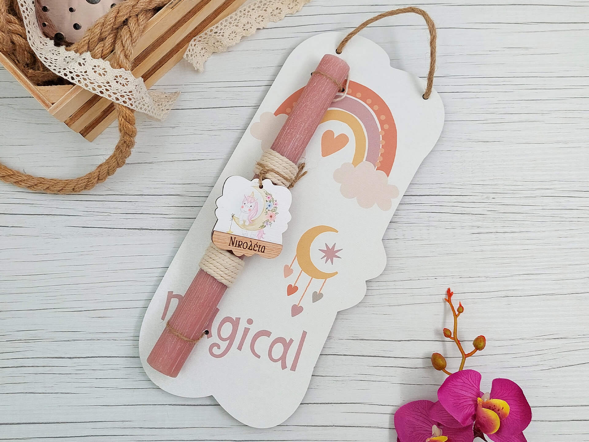 Πασχαλινή λαμπάδα με διακοσμητική πλάτη “Magical”