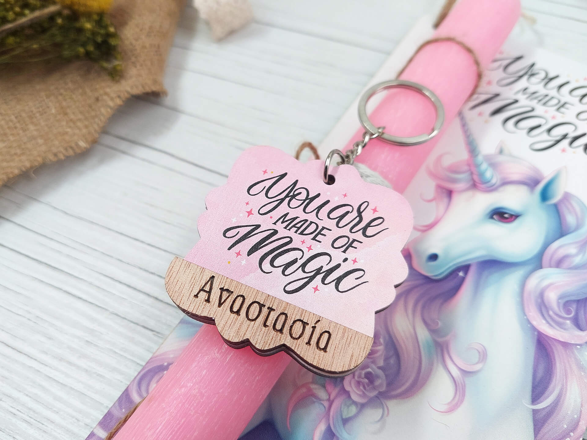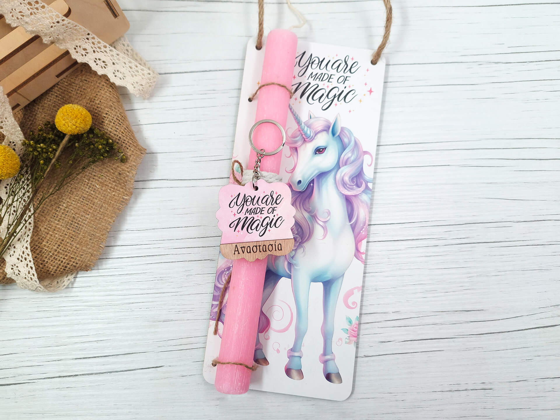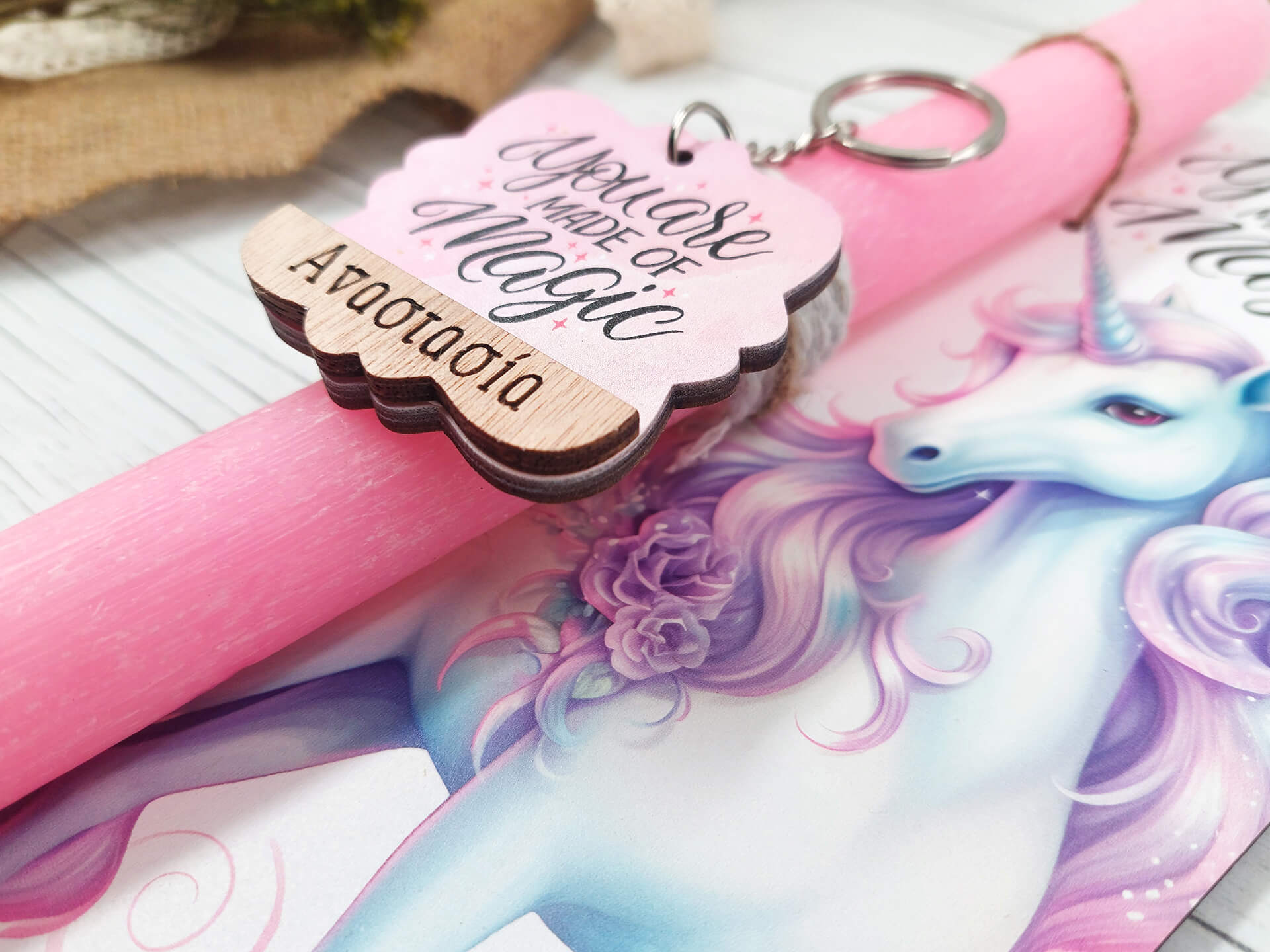 Πασχαλινή λαμπάδα με διακοσμητική πλάτη “Μονόκερος”