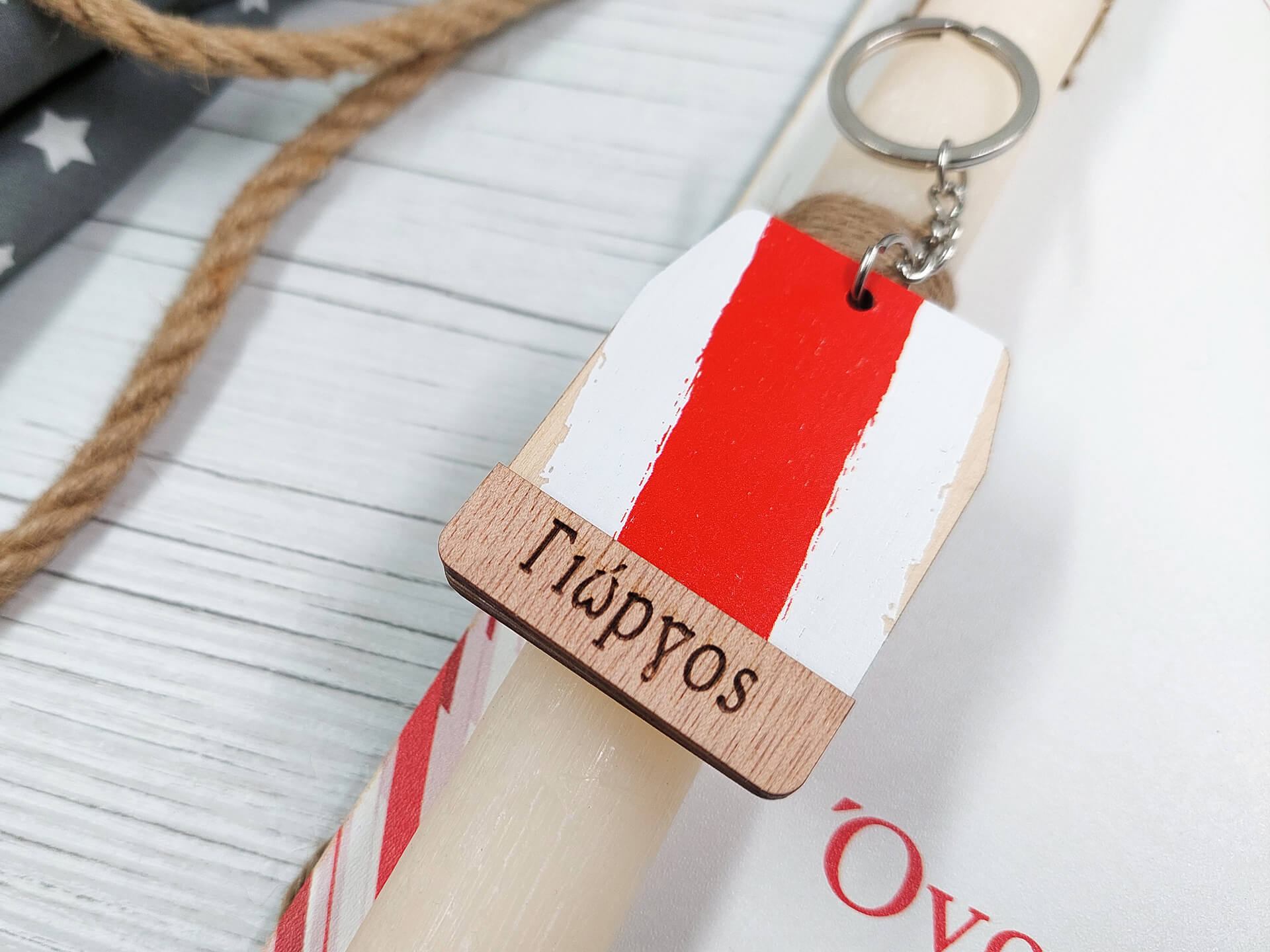 Προσωποποιημένη πασχαλινή λαμπάδα με ξύλινη διακοσμητική πλάτη και διακοσμητικά στοιχεία!