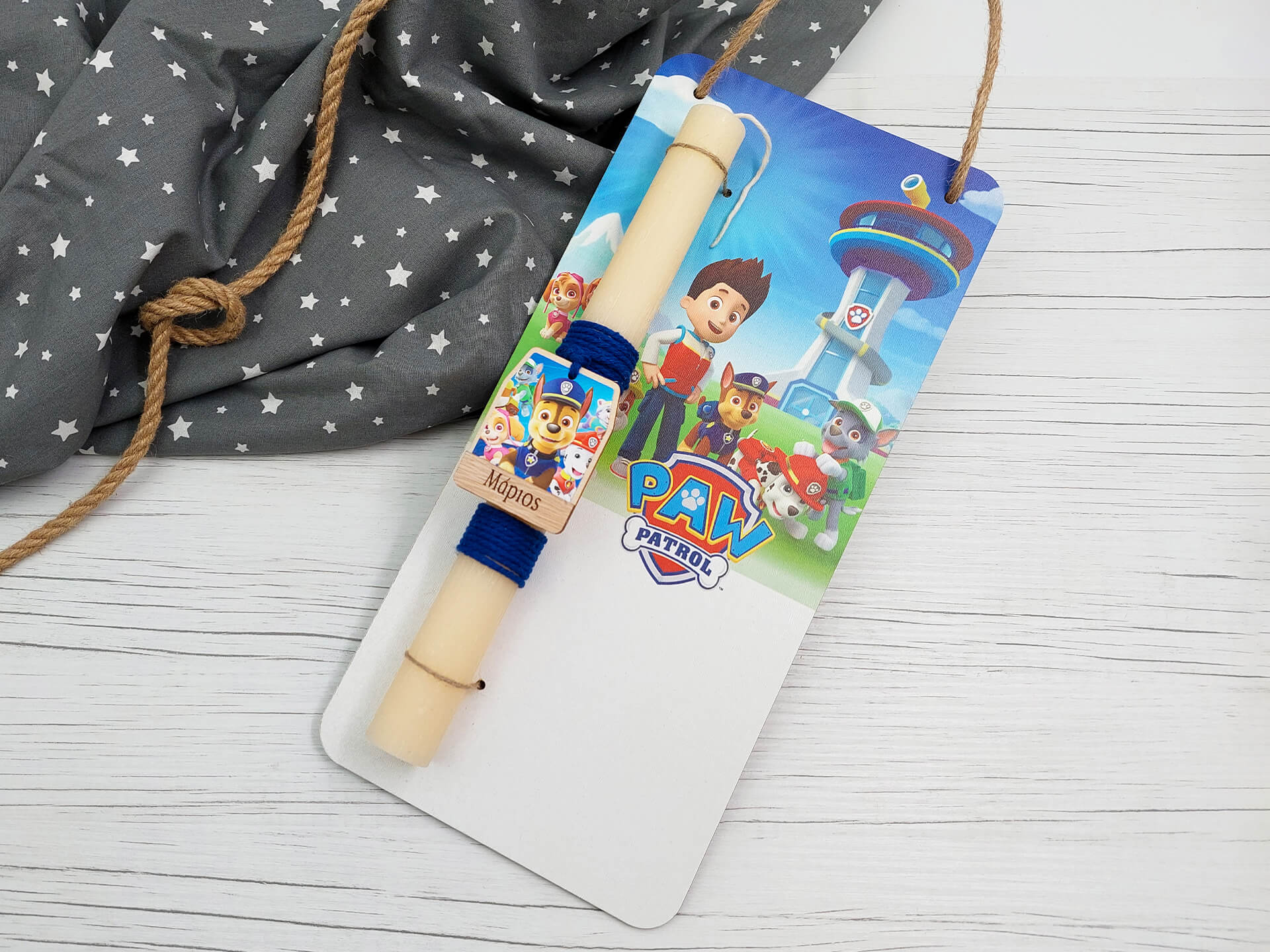 Πασχαλινή λαμπάδα με διακοσμητική πλάτη “Paw Patrol”