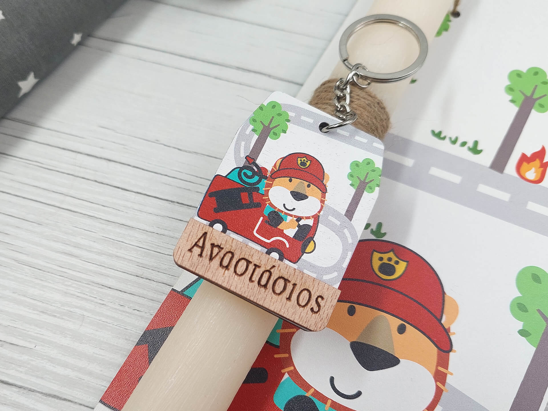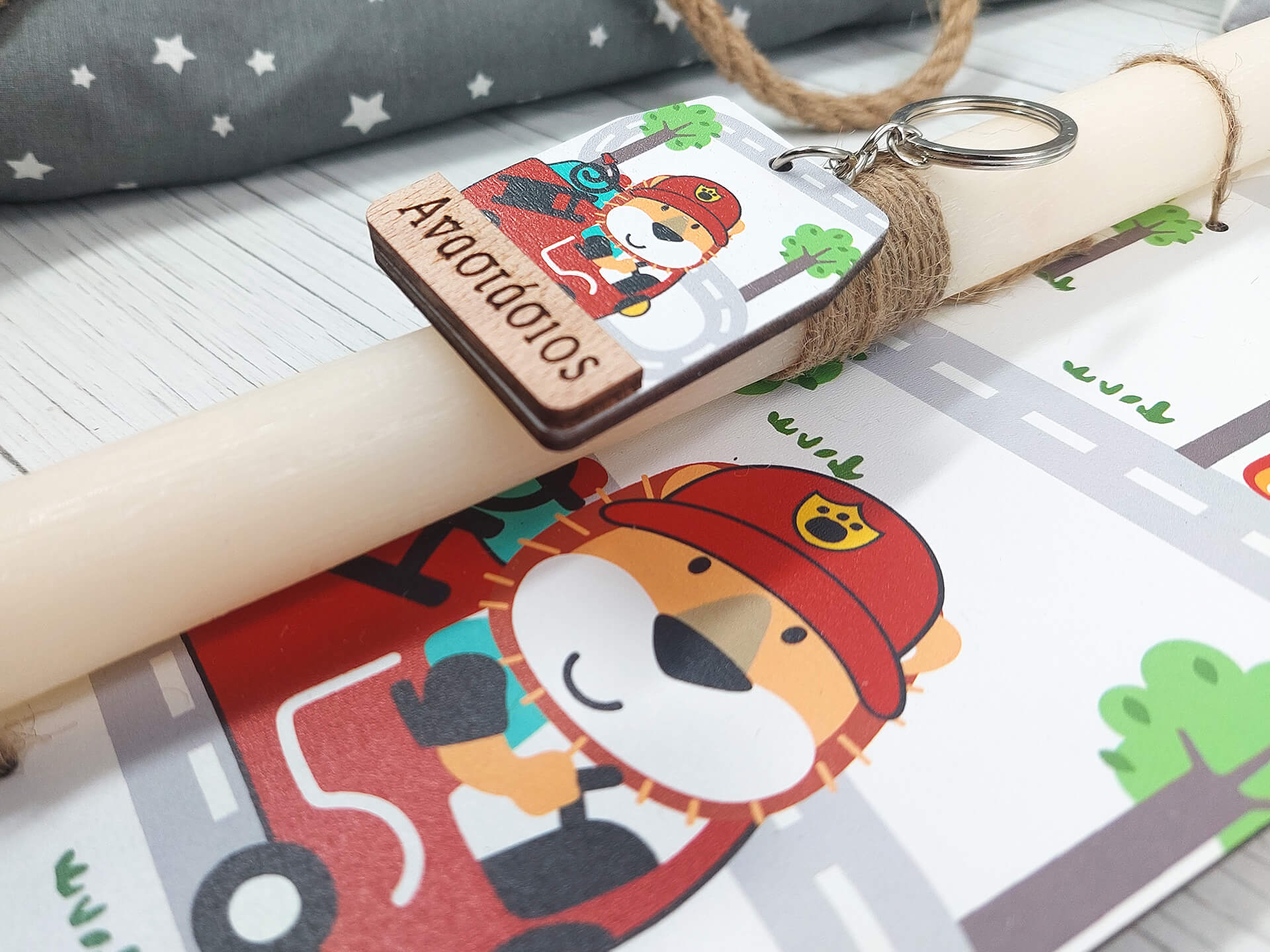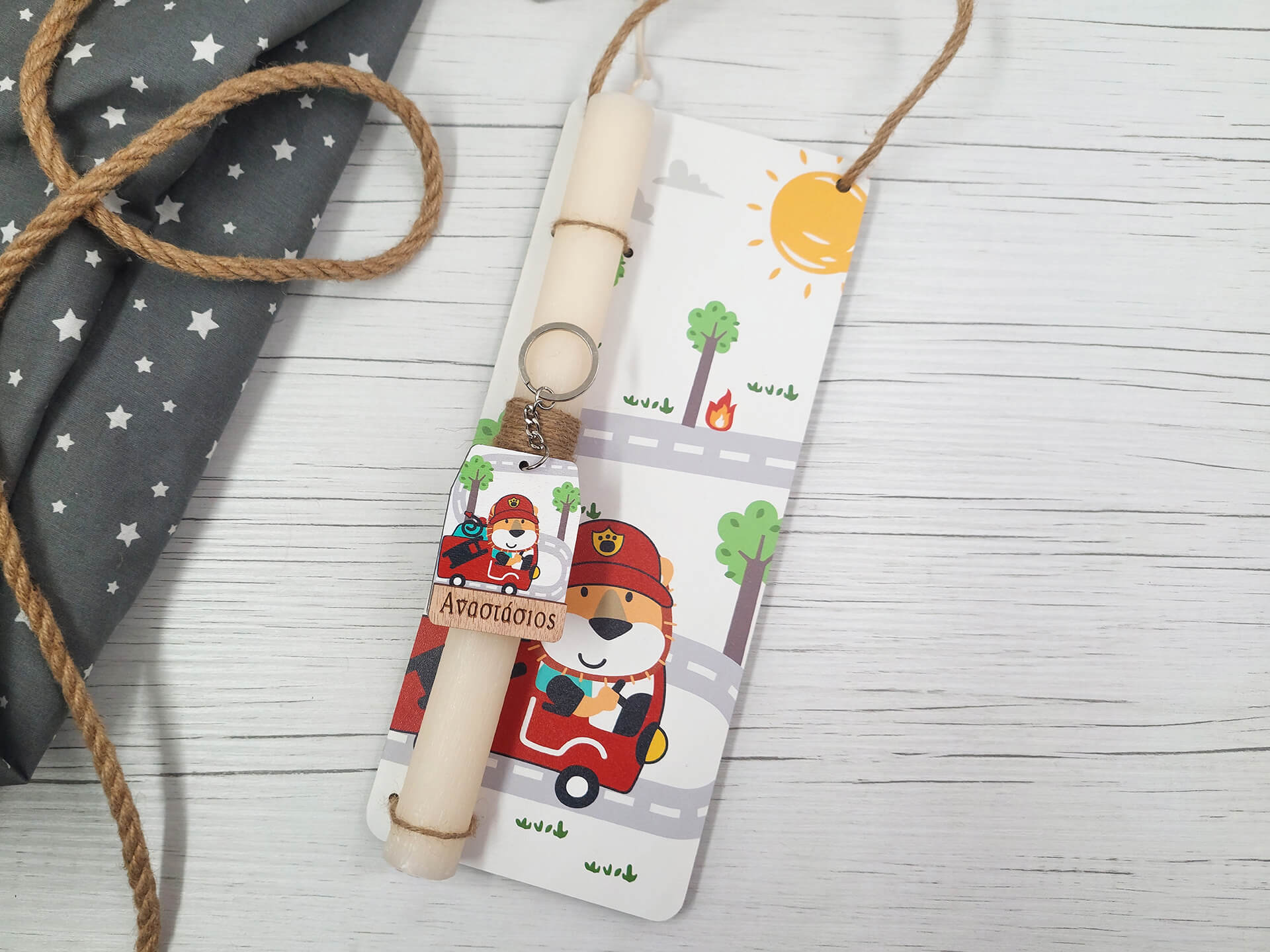 Πασχαλινή λαμπάδα με διακοσμητική πλάτη “Πυροσβεστικό”