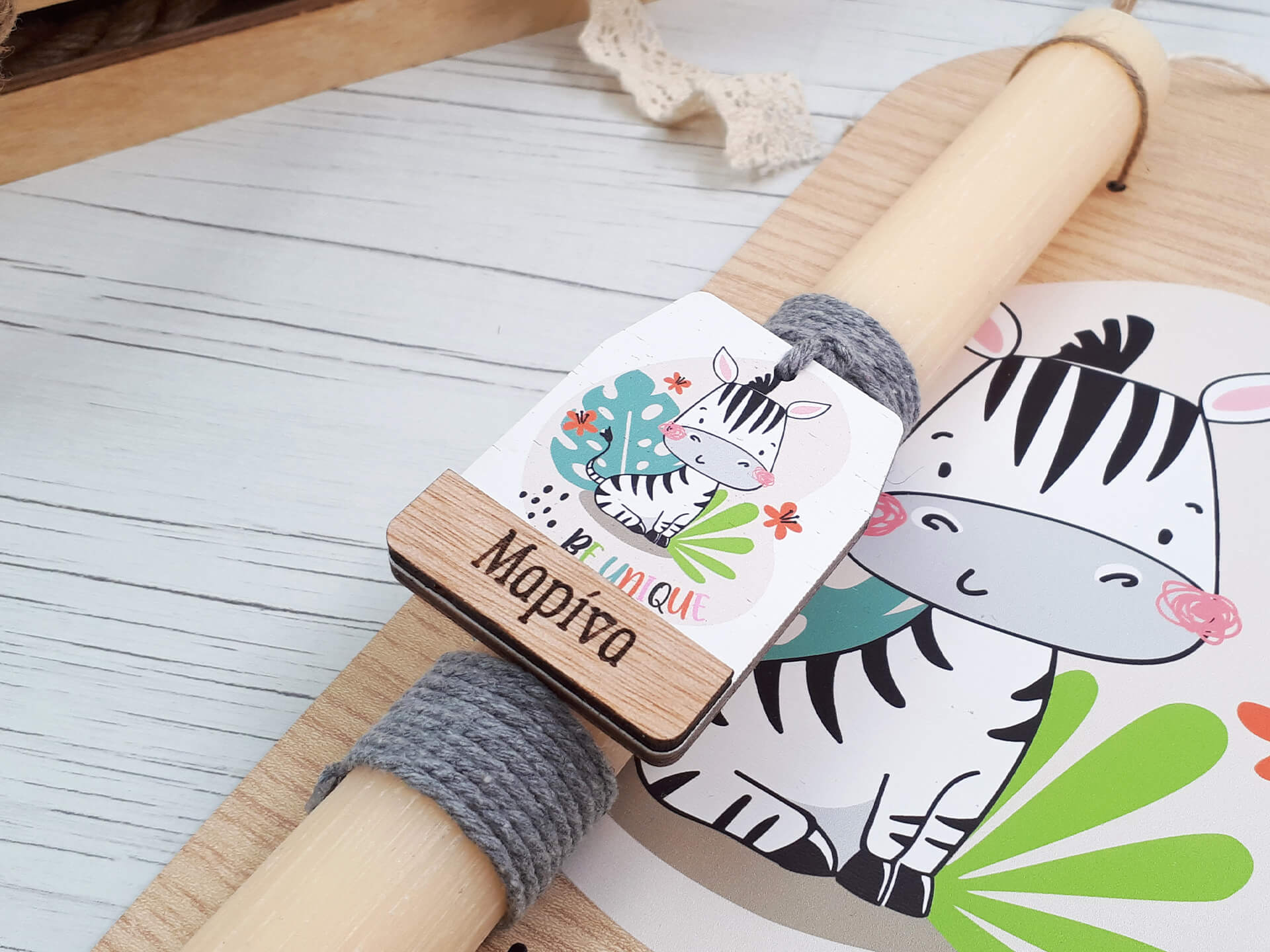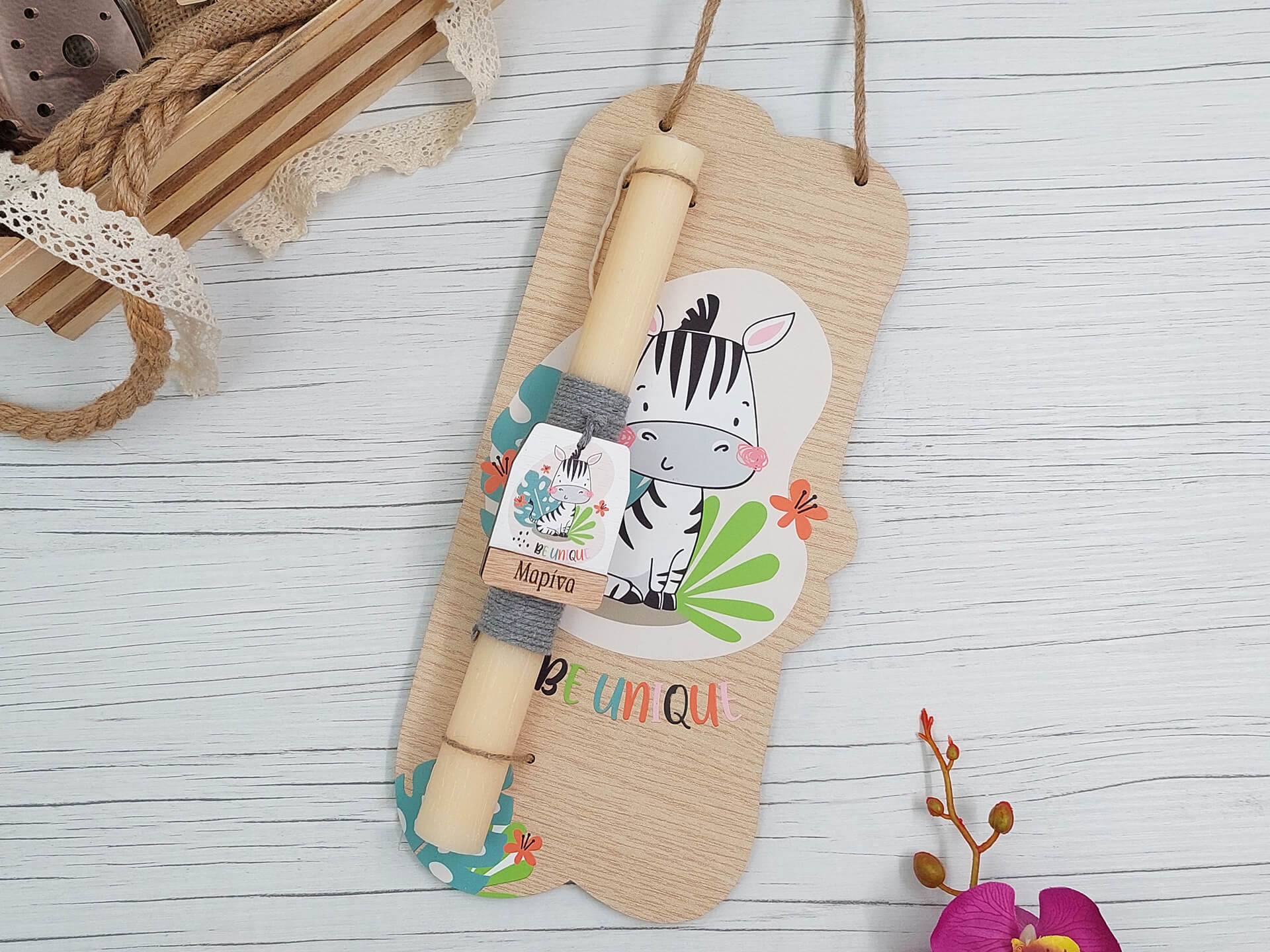 Προσωποποιημένη πασχαλινή λαμπάδα με ξύλινη διακοσμητική πλάτη και διακοσμητικά στοιχεία!