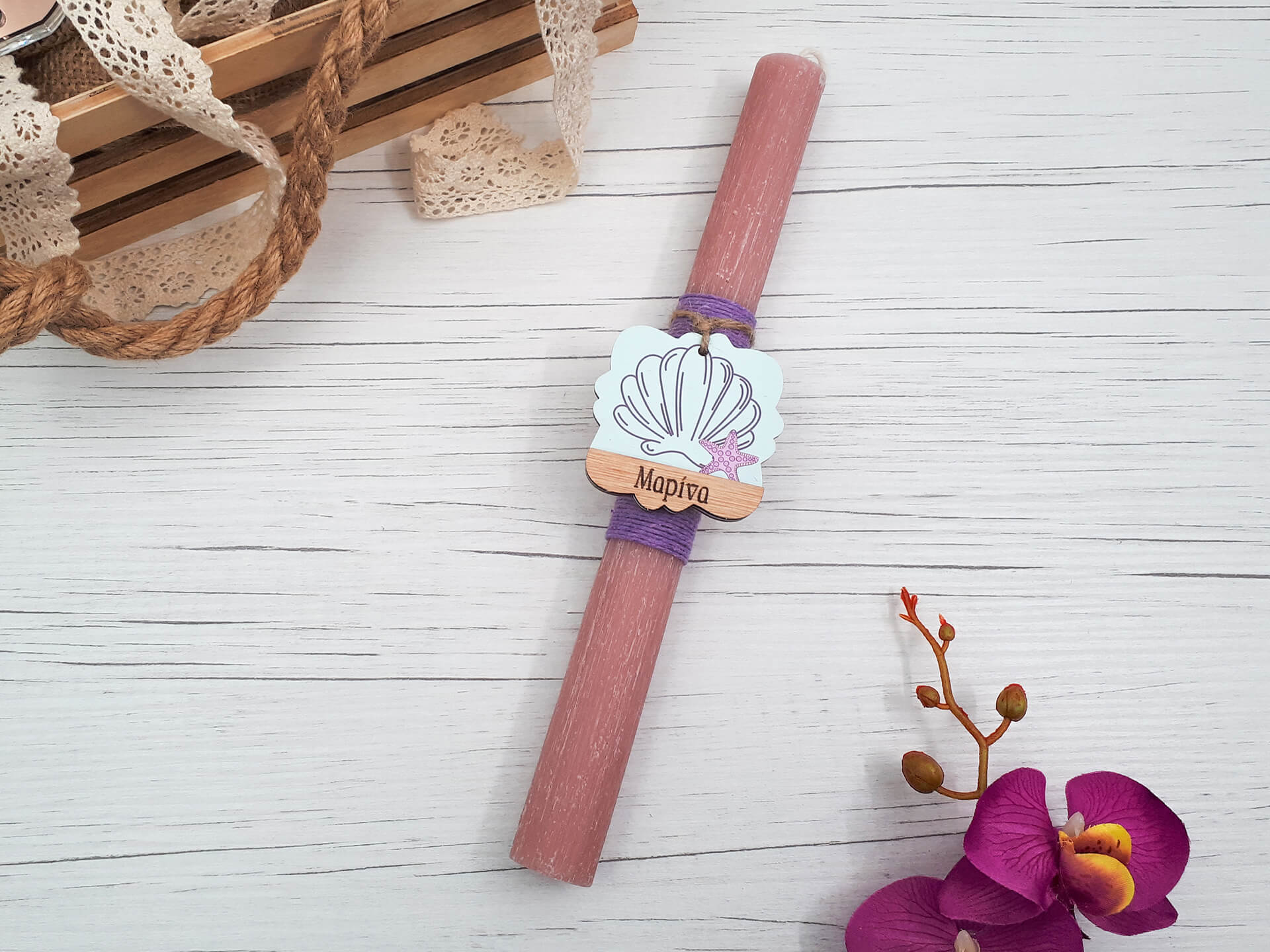 • Υλικά: Αρωματική λαμπάδα στρογγυλή 27cm, ξύλινο διακοσμητικό στοιχείο