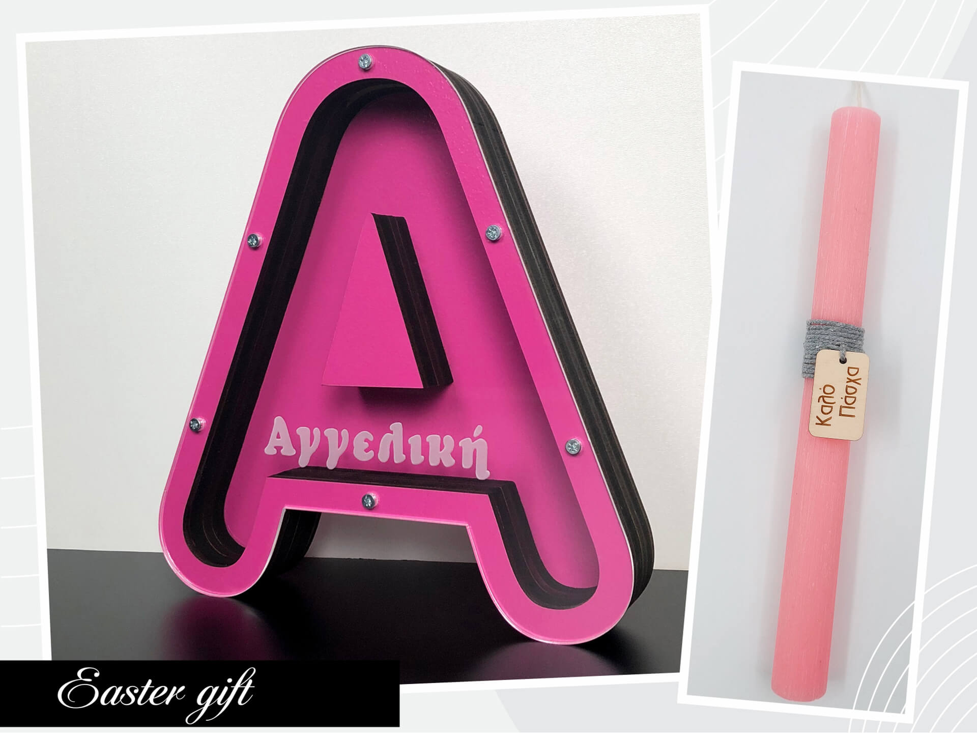 Πασχαλινό σετ δώρου με κουμπαρά μονόγραμμα και πασχαλινή λαμπάδα!