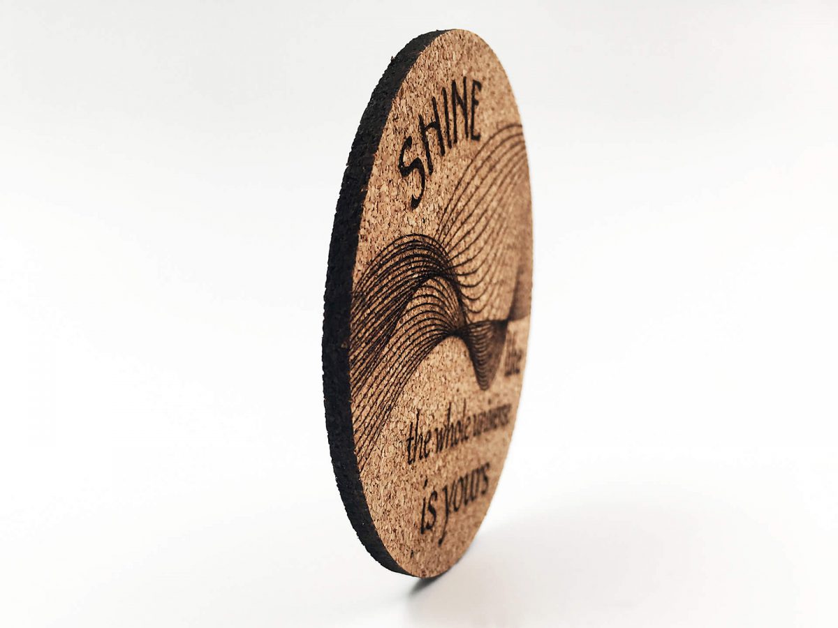Πρωτότυπο σουβέρ από φελλό με χάραξη τη φράση ''SHINE like the whole universe is yours''.
