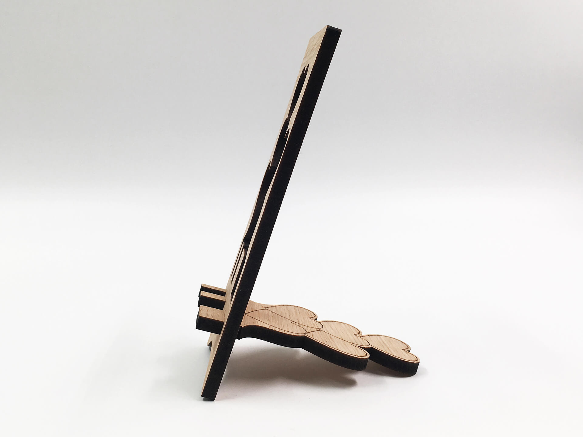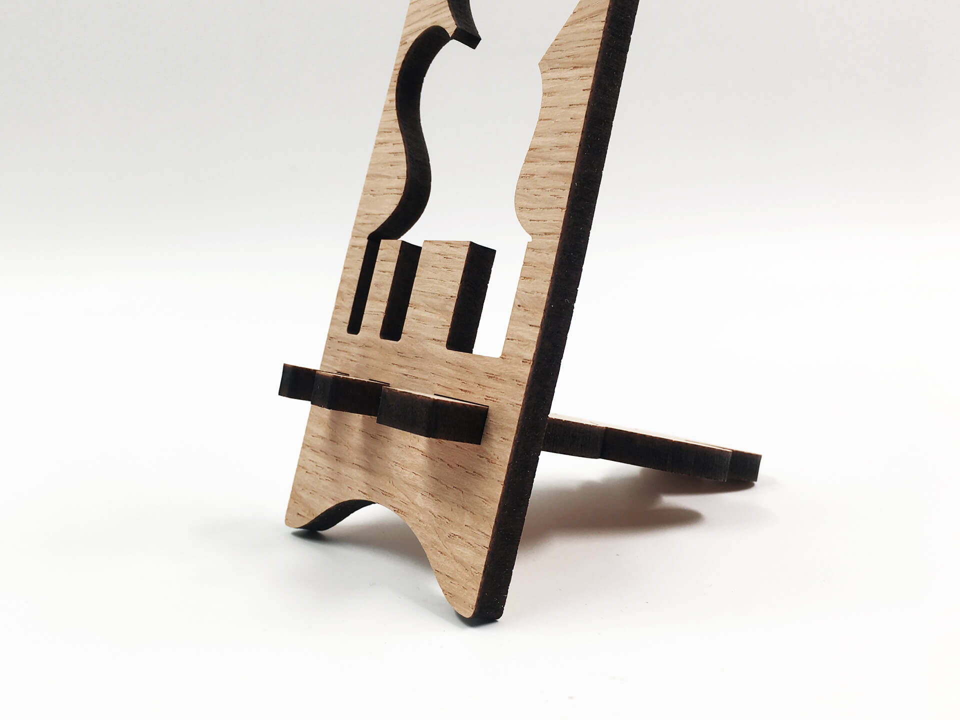 Ξύλινη βάση προβολής με κοπτικό σχέδιο για την εύκολη λειτουργία του κινητού σας. Πρωτότυπος αναδιπλώμενος σχεδιασμός για να την έχετε παντού μαζί σας.