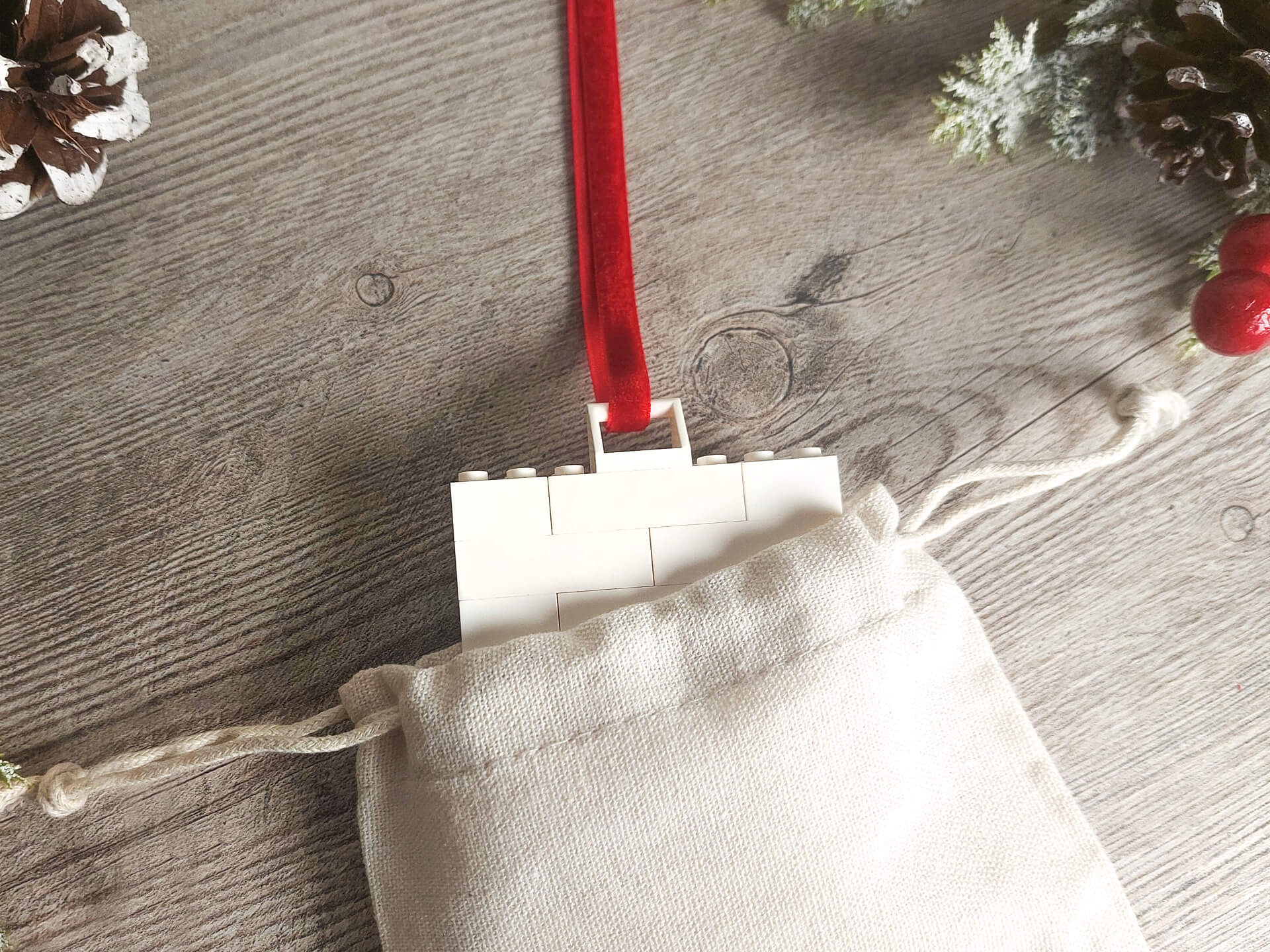 • Υλικά: Τουβλάκια τύπου lego, δεμένο με κόκκινη κορδέλα