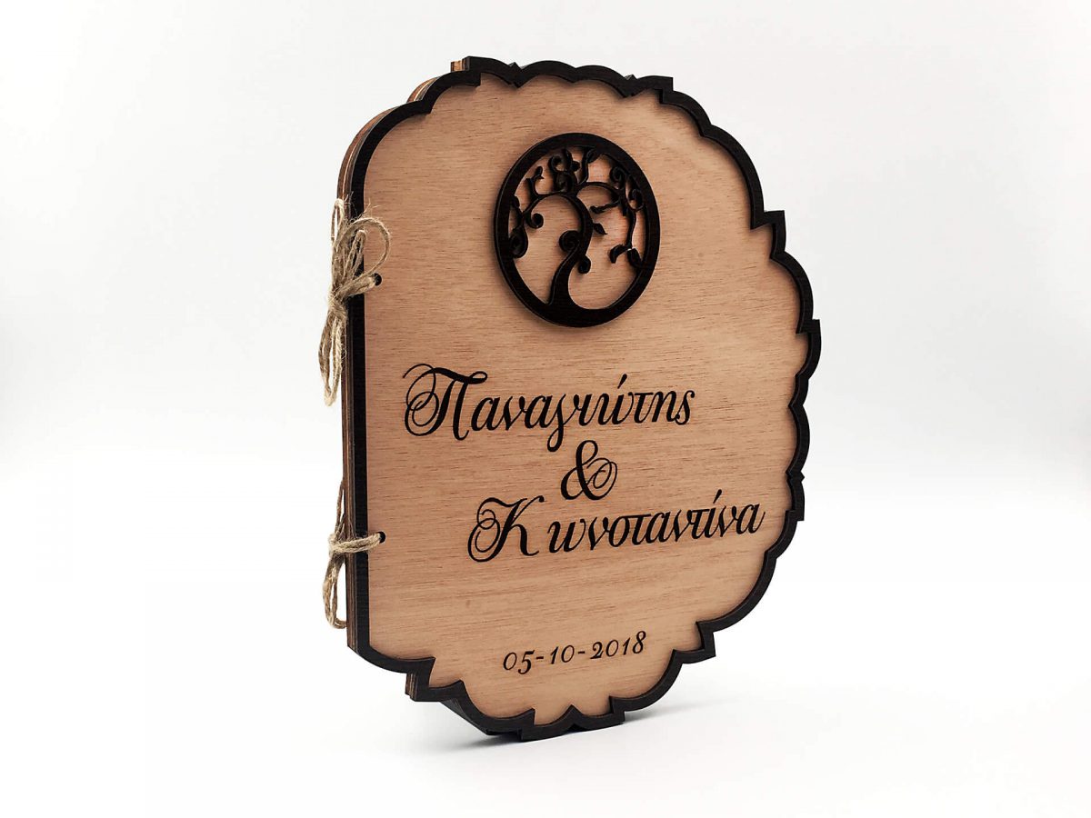 Πρωτότυπο ξύλινο Βιβλίο ευχών με θέμα το "Δέντρο της ζωής".