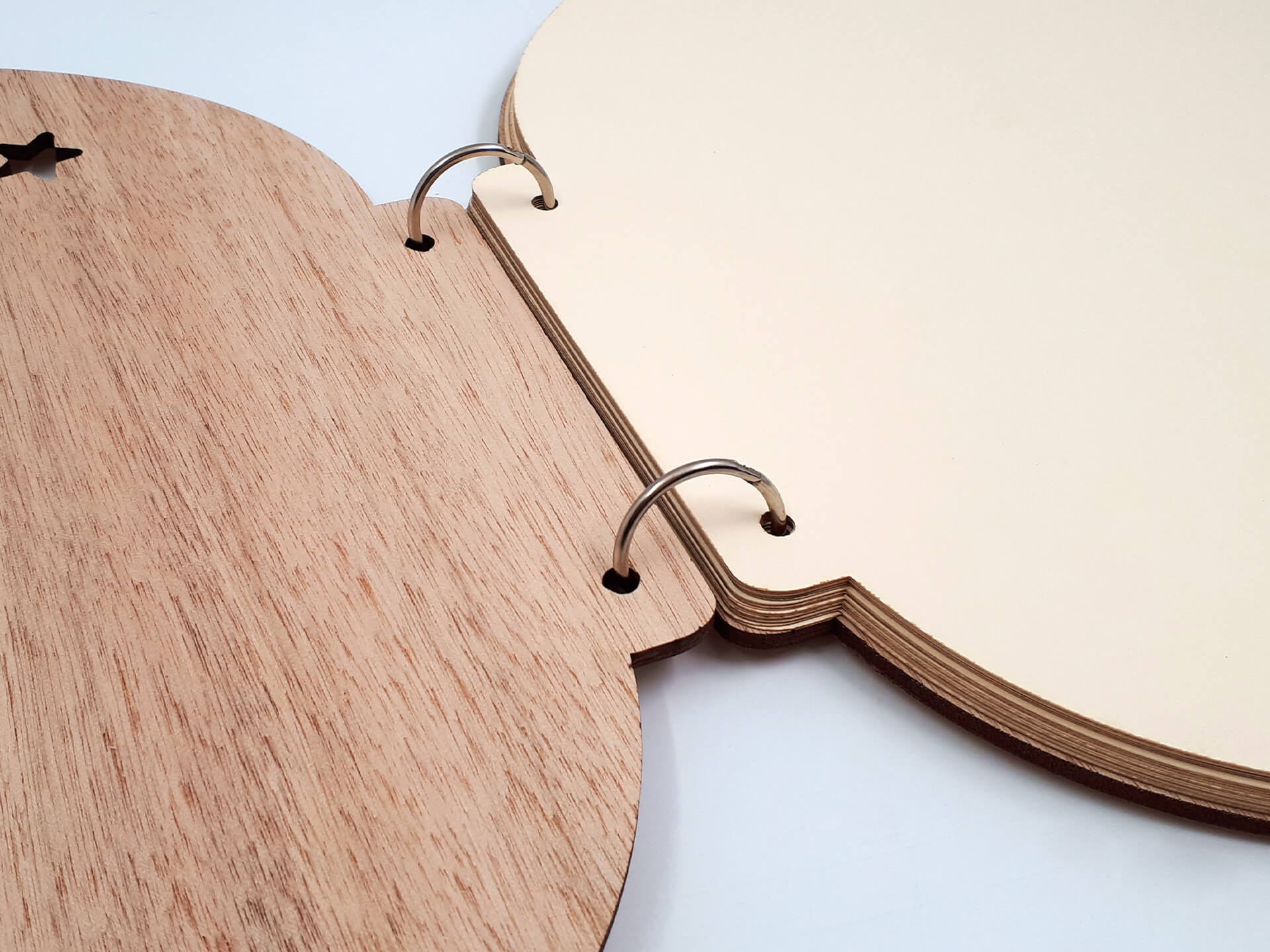 • Υλικά: Εξώφυλλο και οπισθόφυλλο από ξύλο κόντρα πλακέ οκουμέ πάχους 4mm, Ακρυλικό(plexiglass) καθρέπτης χρυσός πάχους 3mm