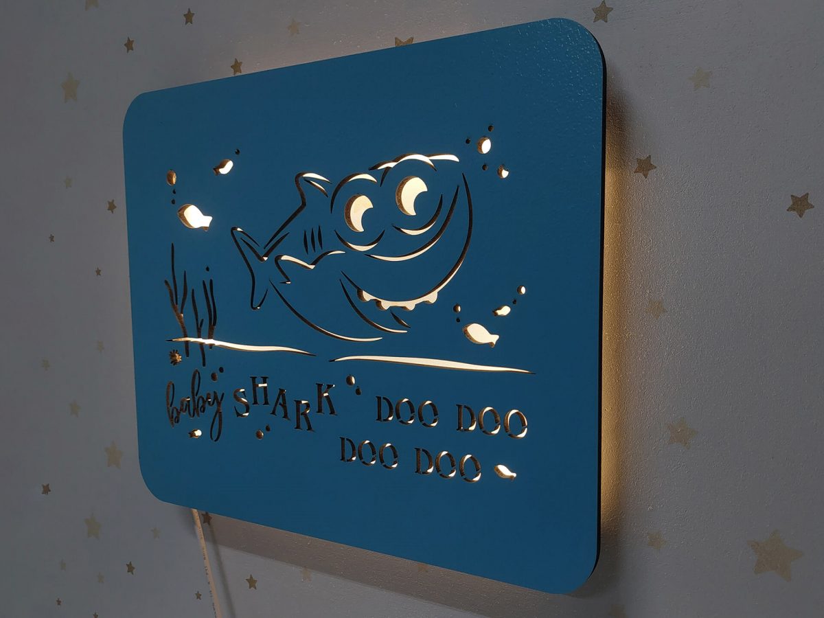 Μοναδικές προτάσεις για τη διακόσμηση του παιδικού δωματίου. Διακοσμητική φωτιζόμενη ταμπέλα baby shark!