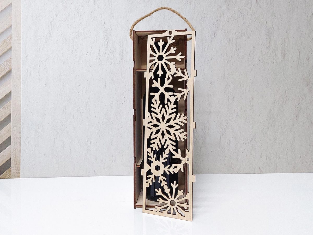 Ξύλινη Συσκευασία Κρασιού “Χιονονιφάδες”