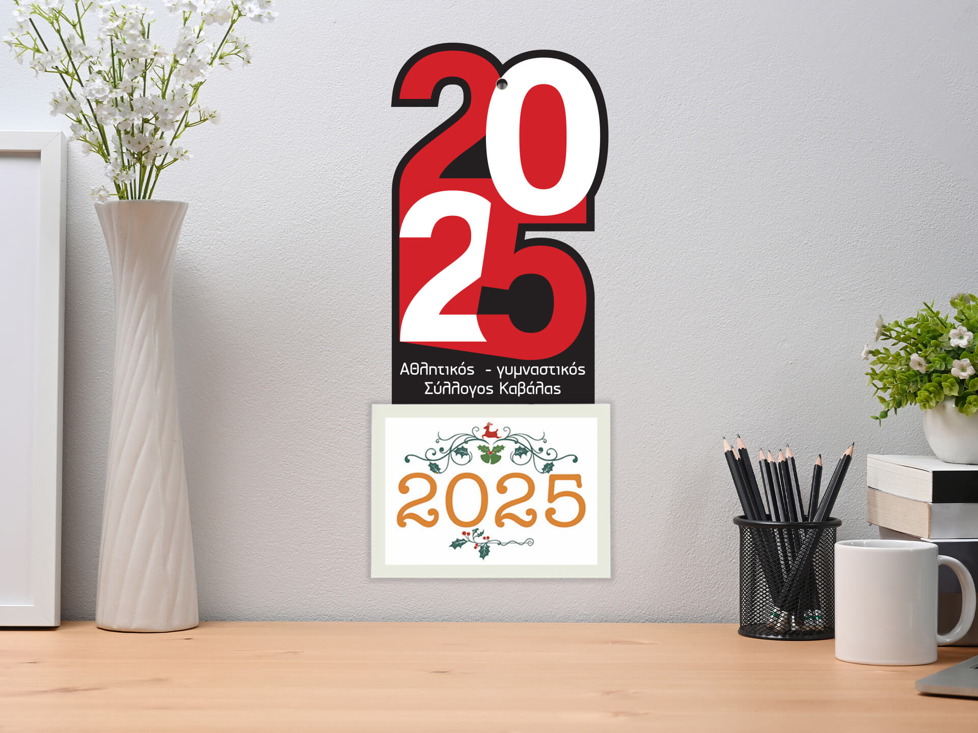• Υλικά: Λευκό mdf πάχους 3mm με έγχρωμη UV εκτύπωση & 12μηνο ημερολόγιο