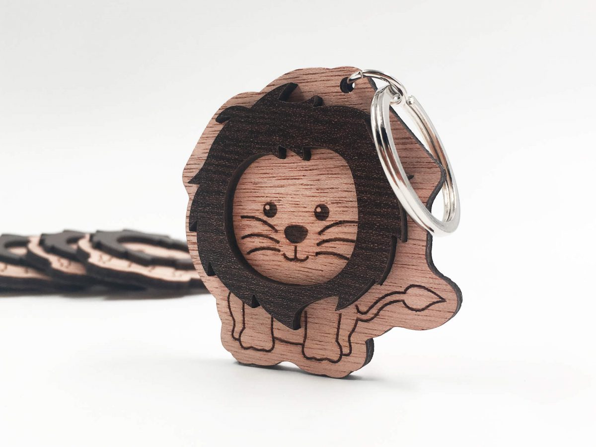 Ιδιαίτερο ξύλινο μπρελόκ με συνδυασμό δύο ξύλων με σχέδιο λιονταράκι για να εντυπωσιάσετε στη βάπτιση του μικρού σας!!